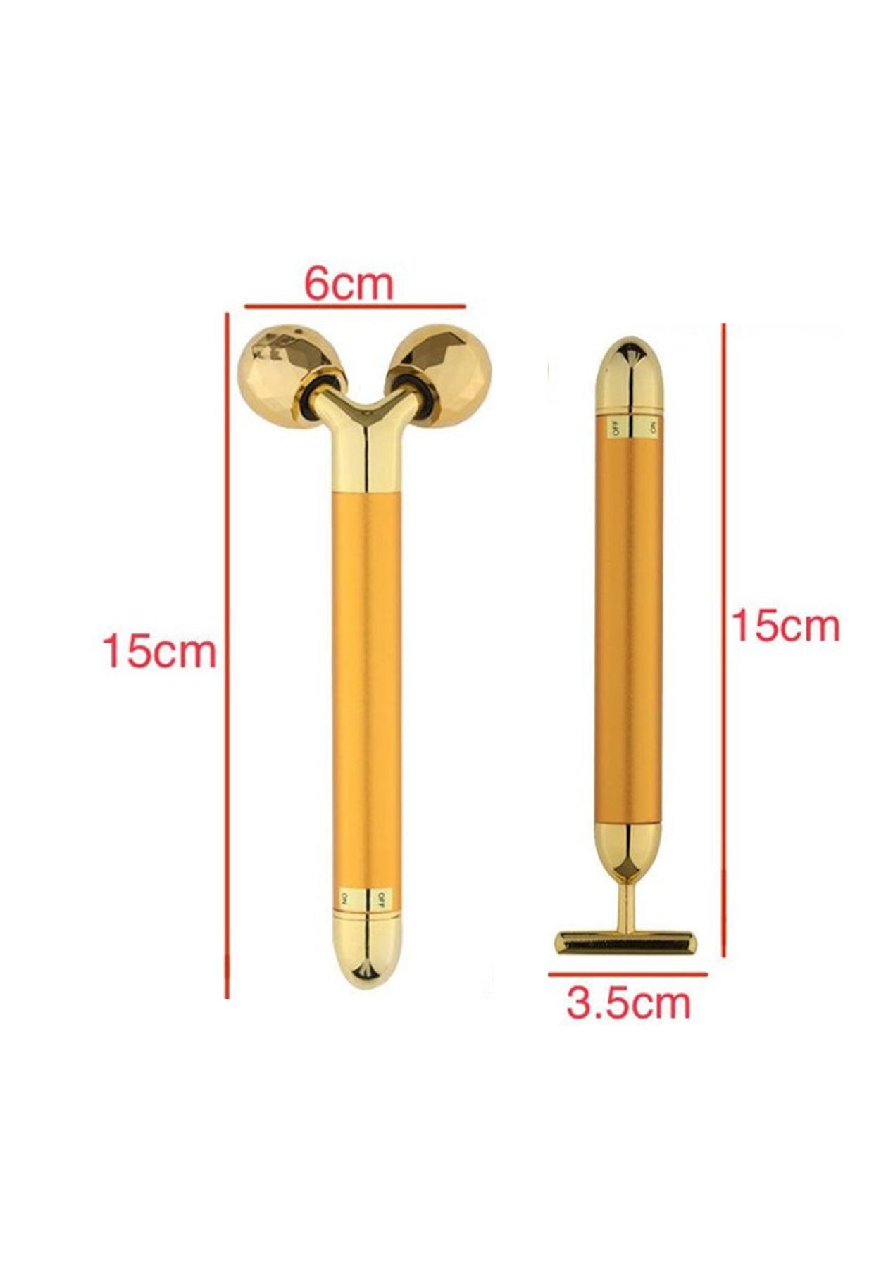 Product Description: The face massager set come with two types of beauty tools, one is 3D roller facial massager and T-shape electric facial massager, which can meet your needs in different scenarios. Enjoy your skin care time with them.Daily use of the face roller massage set will make your face and skin look more beautiful. Also, it can combine with skin care products and promote better absorption. The T shape and 3D roller face massager allows you to use the product on any part of your body from the angle that you prefer.The 3D roller electric face massager surface diamond-grade cut with small diamond shape and unique 3D "V" type design to fits well to every corner of face, make you enjoy comfort experience. T-shape is designed for 6000 vibe per/min and is good for skin.Give the special one a gift of love. The face massager kit comes in a beautifully designed package, which can be a meaningful gift for elder, mom, grandma, wife, daughter, sister. Besides, you can enjoy face massager for face care while taking a bath due to a special waterproof design.?Product Specification:Color: Gold, Rose Gold, Black, SilverWeight: 320gMaterial: MetalSize: 3D Roller Massager 15 x 6 cm, T Shape Massager 15 x 3.5 cmPower Supply: 1 x AA Battery (Not Included)Function: Face Lifting Facial Massager?Package Inclusion:1 x 3D Roller Face Massager1 x T Shape Facial Massager