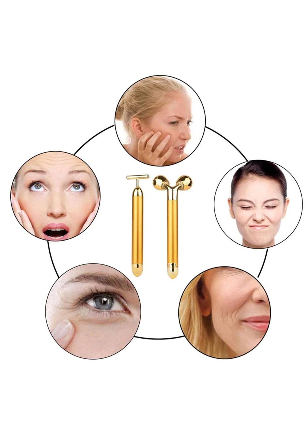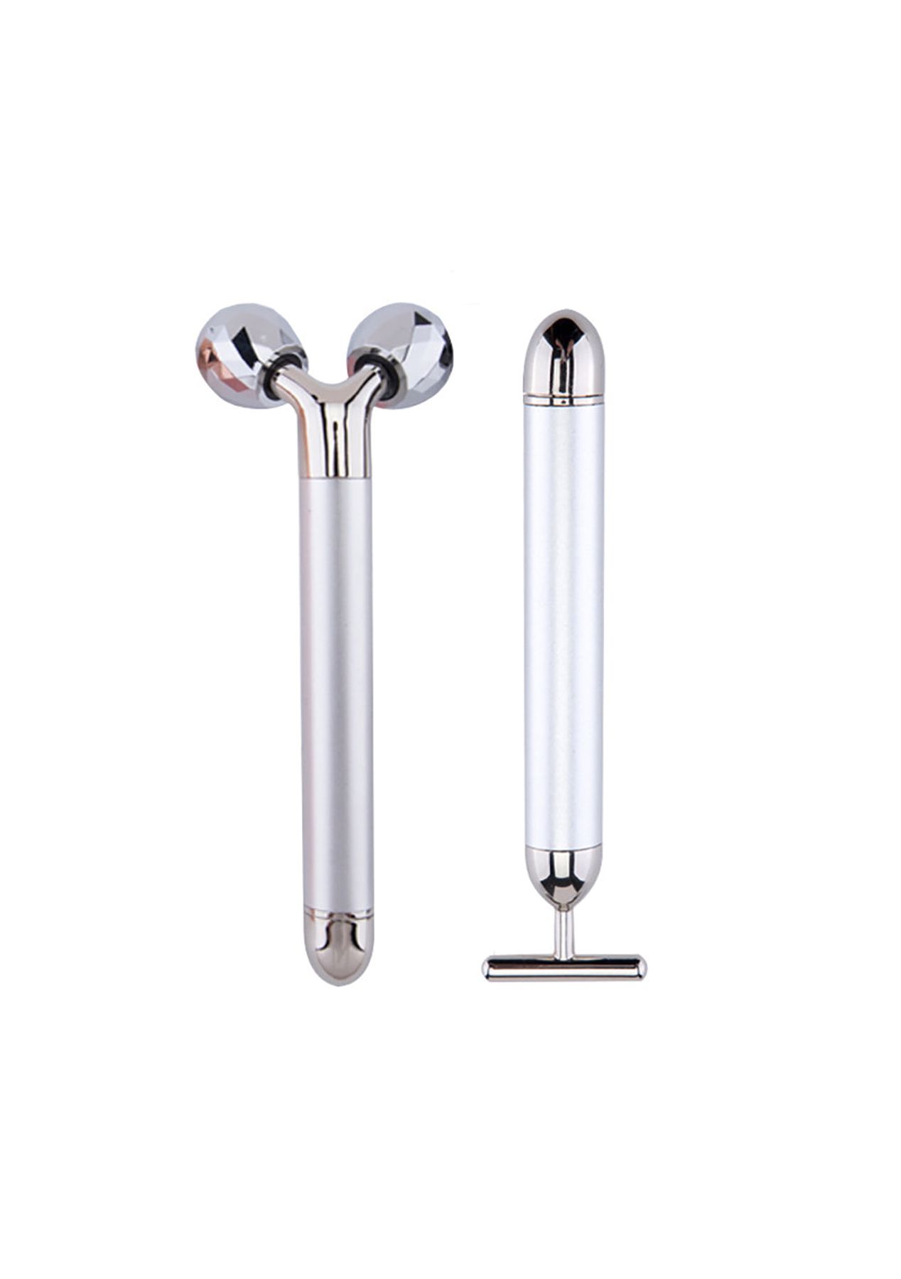 Product Description: The face massager set come with two types of beauty tools, one is 3D roller facial massager and T-shape electric facial massager, which can meet your needs in different scenarios. Enjoy your skin care time with them.Daily use of the face roller massage set will make your face and skin look more beautiful. Also, it can combine with skin care products and promote better absorption. The T shape and 3D roller face massager allows you to use the product on any part of your body from the angle that you prefer.The 3D roller electric face massager surface diamond-grade cut with small diamond shape and unique 3D "V" type design to fits well to every corner of face, make you enjoy comfort experience. T-shape is designed for 6000 vibe per/min and is good for skin.Give the special one a gift of love. The face massager kit comes in a beautifully designed package, which can be a meaningful gift for elder, mom, grandma, wife, daughter, sister. Besides, you can enjoy face massager for face care while taking a bath due to a special waterproof design.?Product Specification:Color: Gold, Rose Gold, Black, SilverWeight: 320gMaterial: MetalSize: 3D Roller Massager 15 x 6 cm, T Shape Massager 15 x 3.5 cmPower Supply: 1 x AA Battery (Not Included)Function: Face Lifting Facial Massager?Package Inclusion:1 x 3D Roller Face Massager1 x T Shape Facial Massager