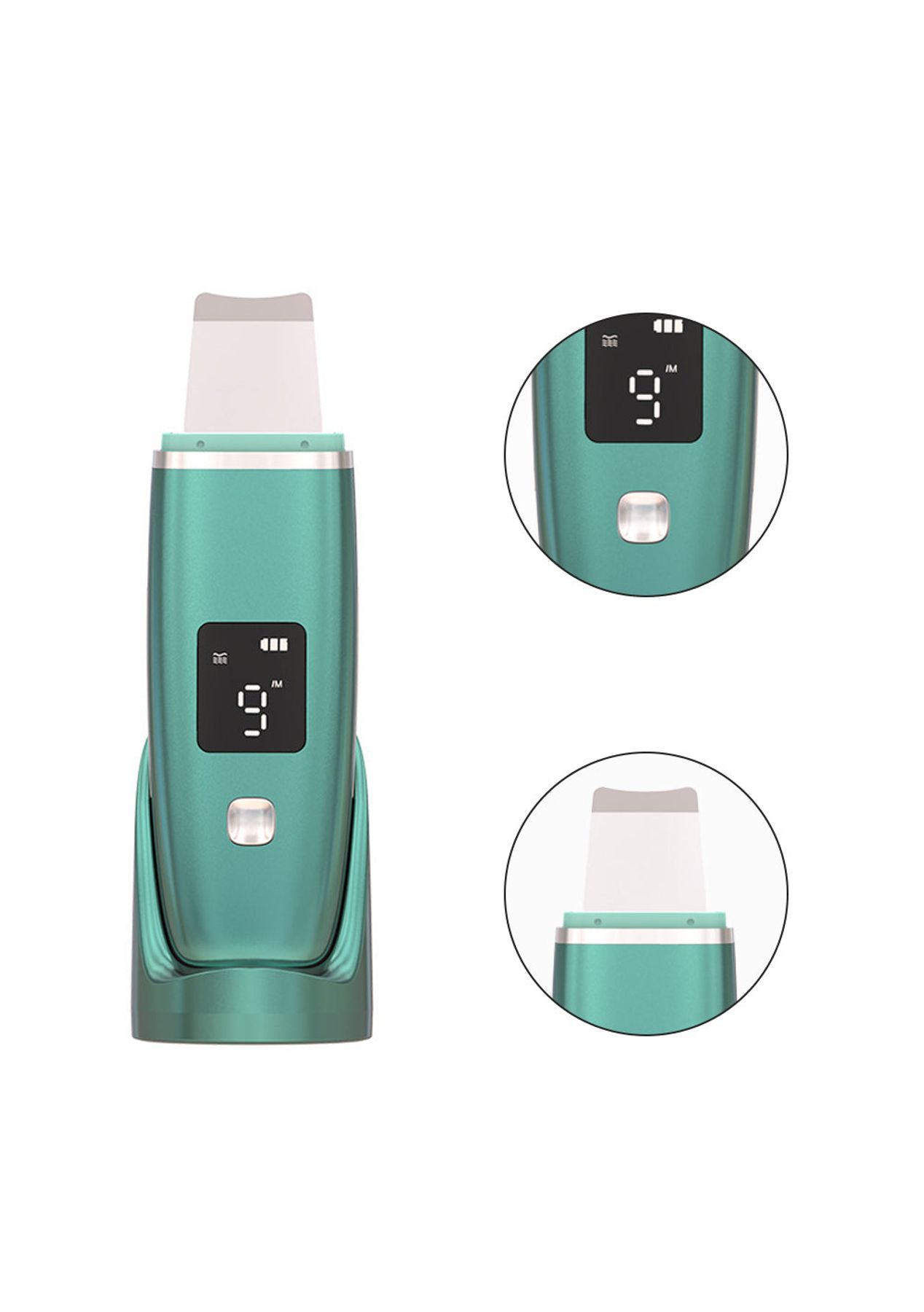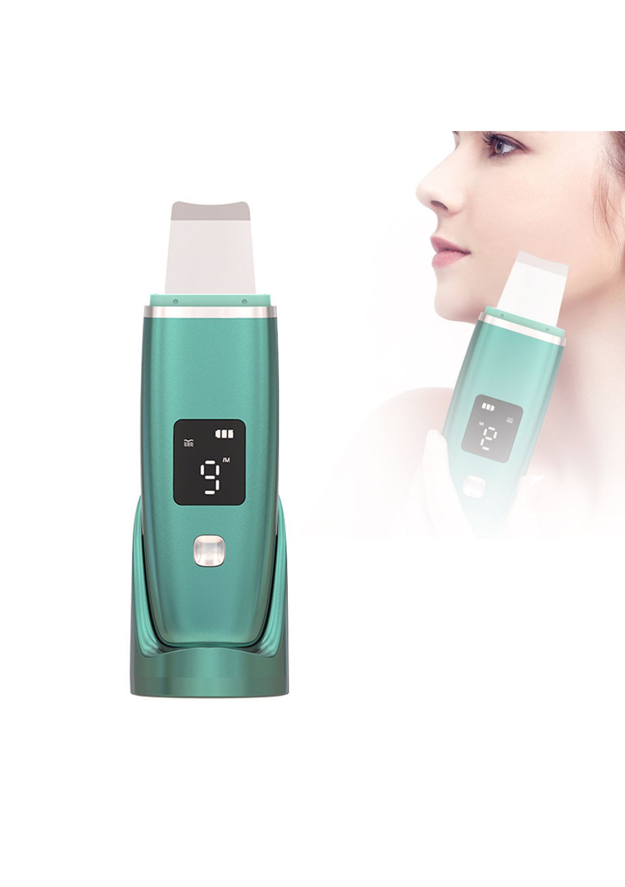 Product Description: Through high-frequency vibration, the skin spatula can clean blackheads, whiteheads, keratin, dead skin, and acne quickly giving you a gentle exfoliating experience.The spatula is made of 100% stainless steel which is safe to use. The skin scrubber is equipped with a convenient charging socket.You can use a USB data cable to achieve fast charging, or charge it through a computer, mobile power, and mobile phone charger easily.It performs 4 different modes for full facial care. Cleaning: Deep clean your skin with high vibrations.Ion+: Helps to take out the blackheads, dead skin, dirt, or oil. Ion-: Helps the skin absorb nutrition and lift your skin. Lifting: Helps reduce wrinkles and fine lines, makes your skin bright again.Note: Do not use the device while charging.?Product Specification:Color: Green, Purple, WhiteMaterial: ABSSize: 168 * 50 *20 mmWeight: 163gFunctions: Facial CareUsage Time: 100 MinsCharging Time: 1 hourBattery Information: 600mAh?Package Inclusion:1 x Host 1 x Cradle 1 x USB Charging Cable 1 x User Manual