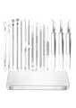 Product Description: 15Pcs Blackhead remover tools set is more hygienic than your fingers to remove acne, blackheads, whiteheads, pimples and fat granules easily which avoid infection.?This blackhead extractor with anti-slip handle design help you better control the pressure during use, ensuring every step can be done with exceptional control and precision to avoid hurt the skin.?The pimple popper tool designed with electroplated needle and stainless steel. It won't cause sensitivity issues; our acne extractor kit can work on all types of skin.?15 PCS blackhead removal tools with a metal box, easy to store and carry, suitable for putting in a cosmetic bag.?We suggest to use the blackhead remover after the acne ripe enough, and please wipe all tools with rubbing alcohol before and after each use. ?Product Specification:Color: SilverWeight: 250gMaterial: Stainless SteelSize: 143 x 83 x 13mmFunction: Stainless Steel Blackhead Remover Tools Kit?Package Inclusion:1 x Blackhead Remover Tools Kit