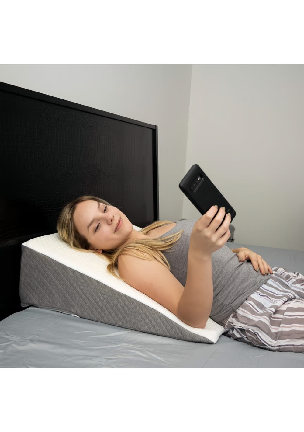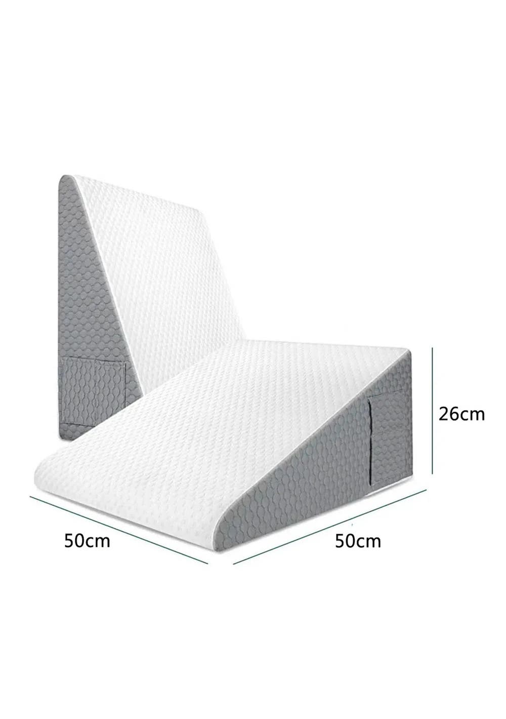This wedge pillow is designed for a comfortable and relaxing night's sleep. It features a 1.5" breathable foam top and a 10.5" high-density foam core, providing enhanced comfort and excellent support for various sleeping positions.</p><p>The triangle pillow wedge comes with two special pockets and a handle for easy portability. The pockets have different opening directions, allowing you to conveniently store items such as glasses, remote controls, or mobile phones within reach.</p><p>This pillow wedge is versatile and can be used for head, back, knee, leg, or foot elevation. Whether dealing with snoring, post-surgery discomfort, acid reflux, GERD, migraines, congestion, leg swelling, or back pain, this wedge pillow offers relief for a variety of symptoms.The bed wedge cover is crafted from high-quality air layer fabric, offering a soft, breathable surface. The cover is easily removable with a zipper for washing, ensuring cleanliness and comfort for prolonged use