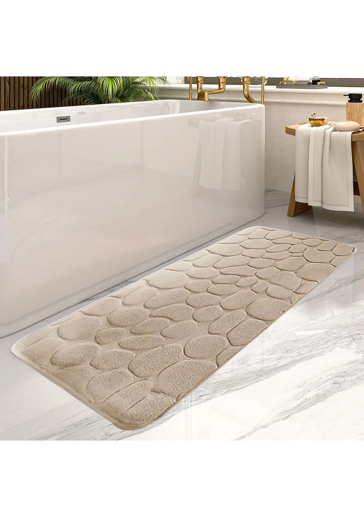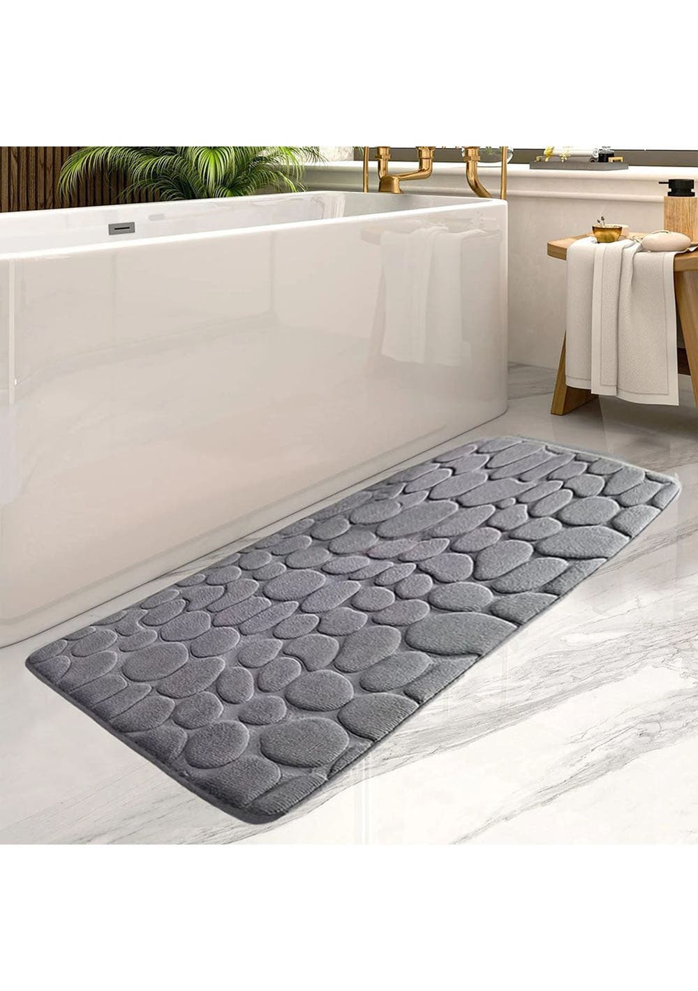 The bath mat has thick and soft memory foam, which can provide unique comfort for your feet. The carpet is specially designed to help you eliminate the pressure on your feet and provide you with advanced support that other bathroom mats cannot provide. The floor mat has strong water absorption capacity. When you step on your feet, you can dry your feet immediately to protect your feet from the cold ground and prevent the floor from getting wet. The bottom of the floor mat is made of PVC, which can be firmly fixed on the wooden floor and tile floor without damaging the floor. Embossed bathroom bath mats are suitable for bathrooms, bedrooms, living rooms, toilets and powder rooms. It is also suitable for pet mats, children's rooms and many other places in the family.