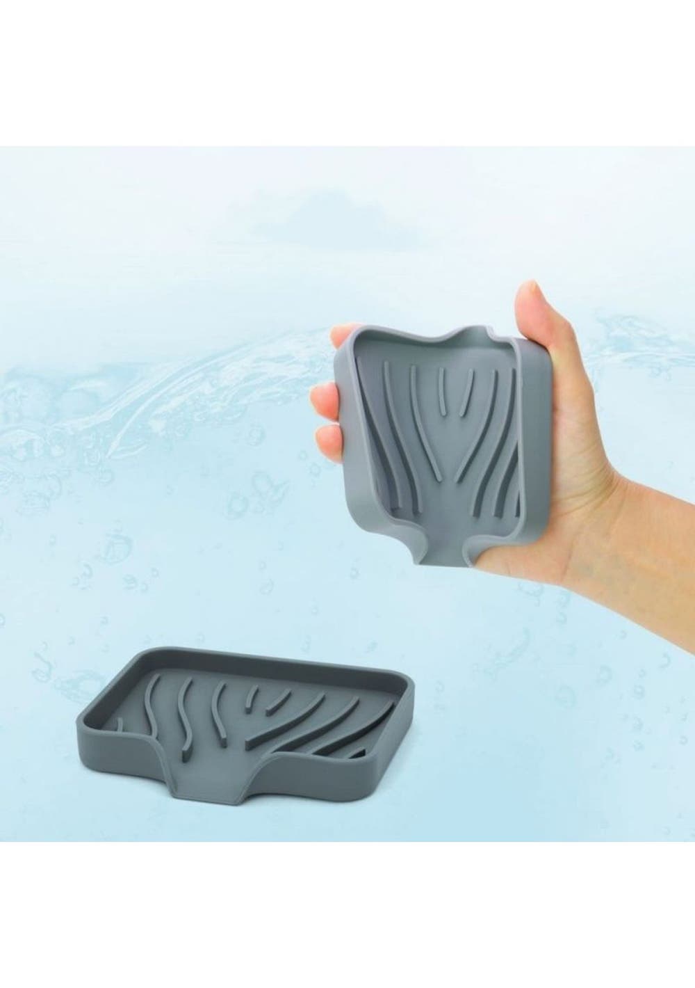 Silicone Drain Soap Box Anti-Slip Sink Tray - Black Small