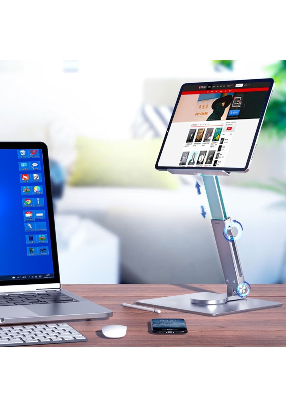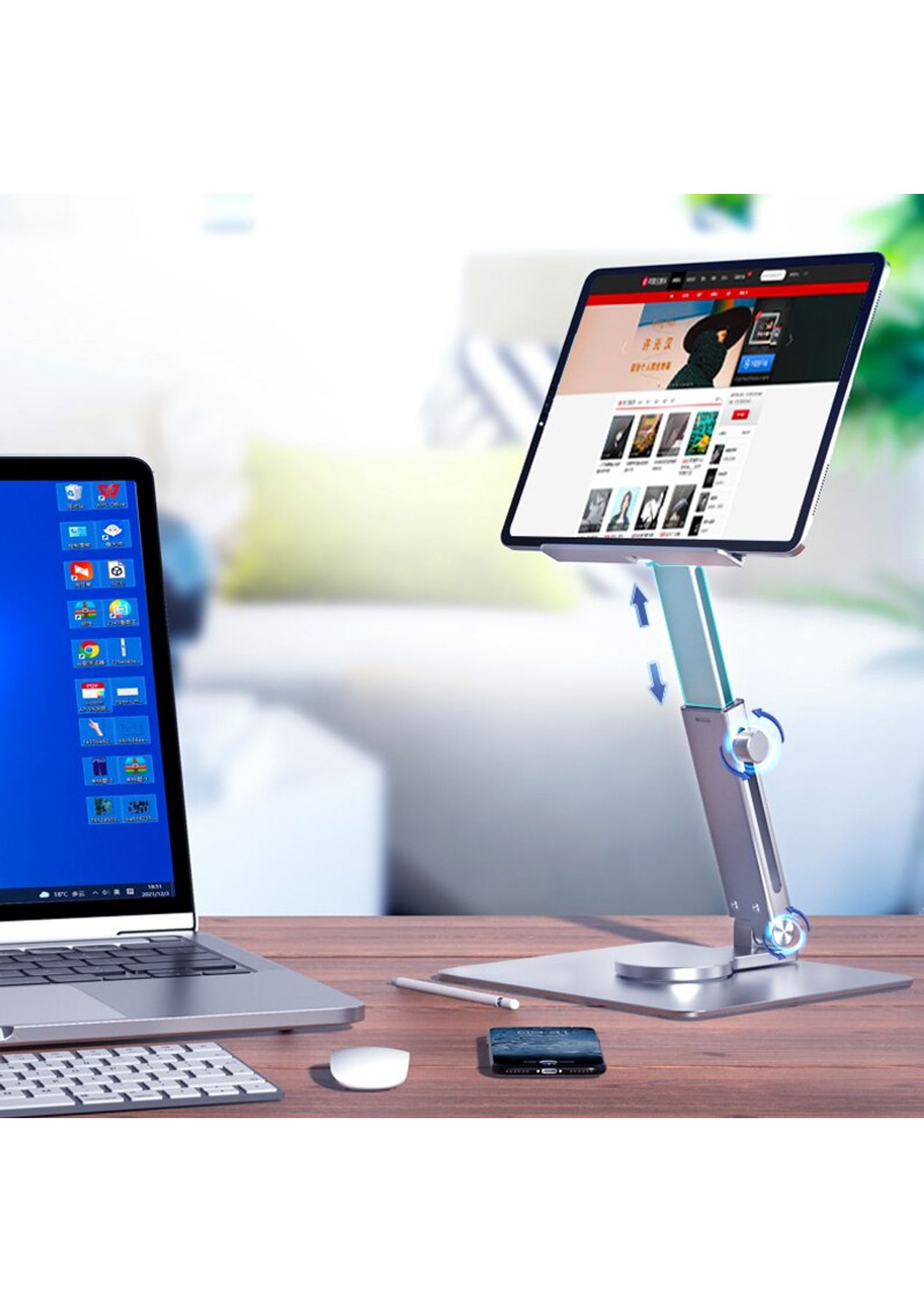 Product Description: The Aluminum Tablet Stand features a 360°„ rotating design, allowing you to easily adjust the viewing angle for your device to suit your needs Constructed from high-quality aluminum alloy, the stand is durable and designed to withstand long-term use.</p><p>This stand is foldable and adjustable, making it suitable for different desk sizes and providing a secure grip on your tablet.</p><p>The stand is compatible with various tablet sizes, including iPad Pro Air 4 Mini 12.9 4-14 inch Xiaomi Tab, making it versatile and practical.</p><p><br></p><p><span style="font-weight: 600;">Product Specification:</span></p><p>Material: Aluminum alloy</p><p>Color: Silver, Purple</p><p>Folding size: 17 x 15.7 x 5.1cm</p><p>Expanded size: 17 x 15.7 x 35.7cm</p><p>Retractable maximum height: approx. 35 cm</p><p>Weight<span style="font-size: 1rem;">: 620g</span></p><p>Function:?Rotating Tablet PC Stand</p><p><br></p><p><span style="font-weight: 600;">Package Inclusion:</span></p><p>1 x?Tablet Stand Holder</p><p><br></p>