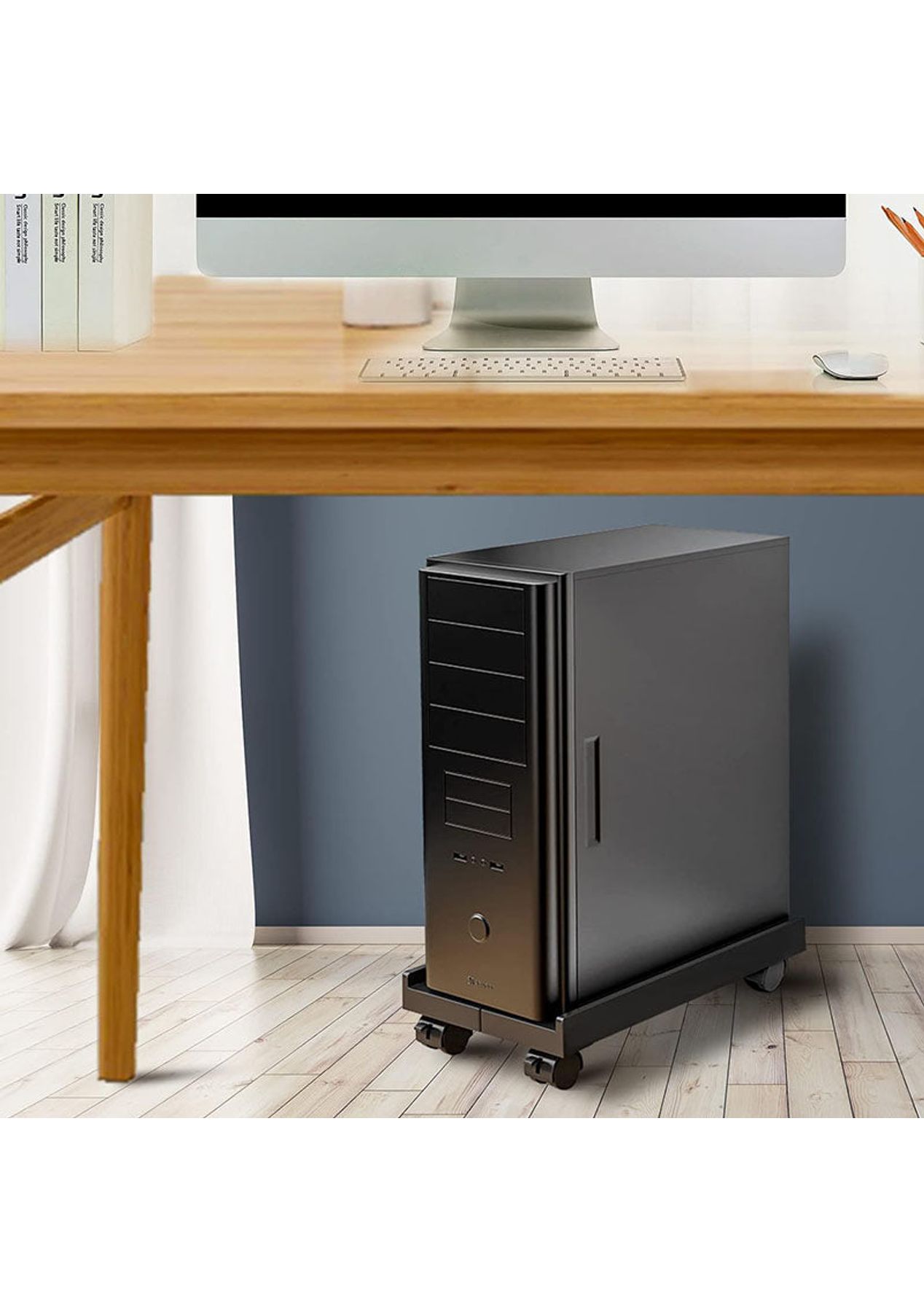Ventilated Computer Tower Stand Mobile Pc Tower Stand With 4 Caster Wheels - Grey