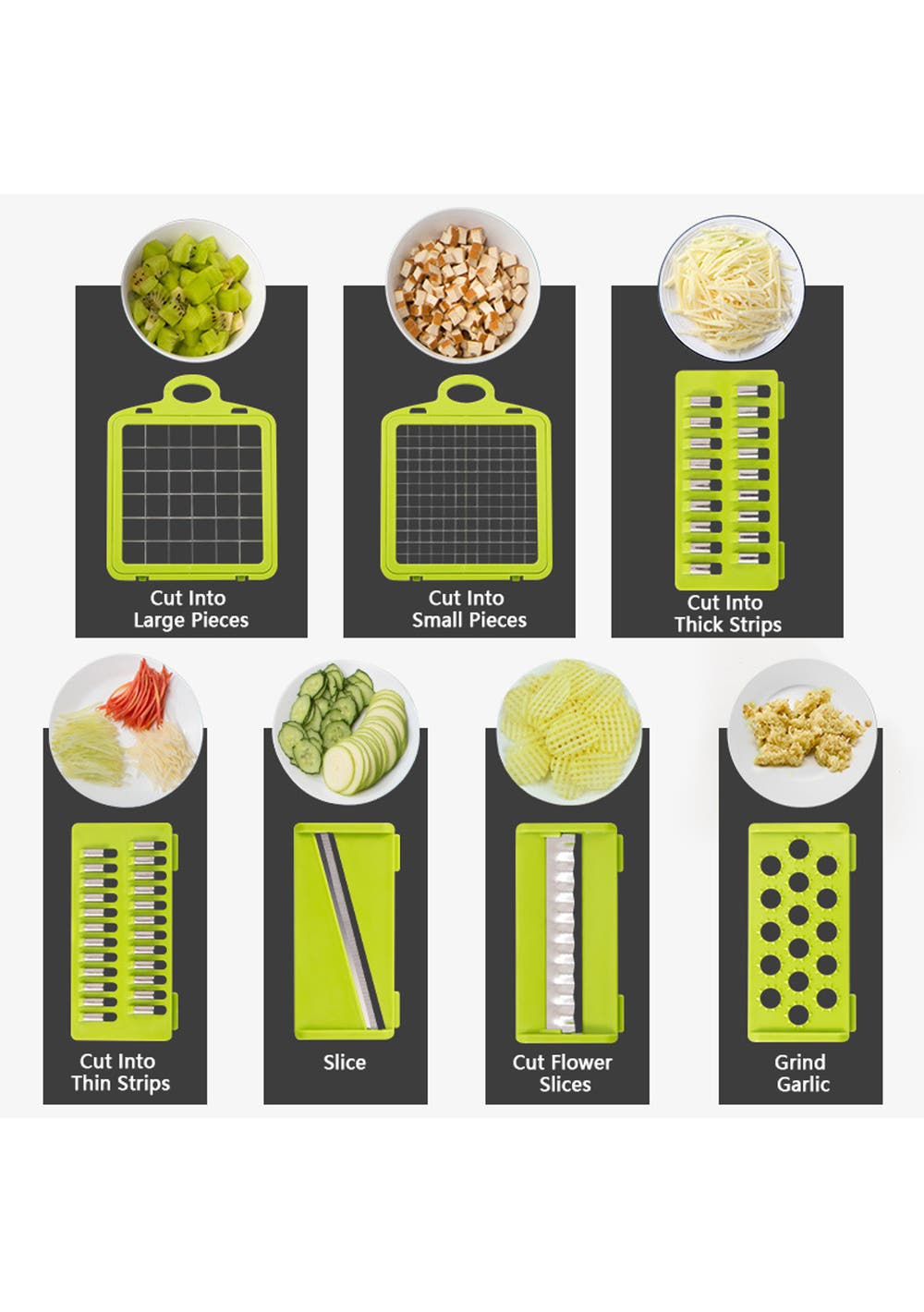 Product Description:The 14/16 in 1 Multifunctional Vegetable Chopper. crafted with durable ABS, PP. the easy-to-clean design and compact size make it a breeze to store after use.The innovative design of this onion chopper allows for multiple uses - from slicing vegetables to grating cheese to chopping nuts.The vegetable chopper features an ergonomic handle for comfortable use and compact storage. with multiple attachments, cutting, slicing, grating, and dicing. the grey color adds a modern touch to any kitchen.Product Specification:Material: ABS, PP, stainless steelColor: GreySize: 31x11x11cmFunction: Multifunctional Vegetable ChopperWashing tips: wash below 60‚ÑÉ, do not wash in dishwasherWeight: 700g Package Inclusion:1 x Multifunctional Vegetable Chopper12/14 x Food chopper attachment1 x Instruction manual