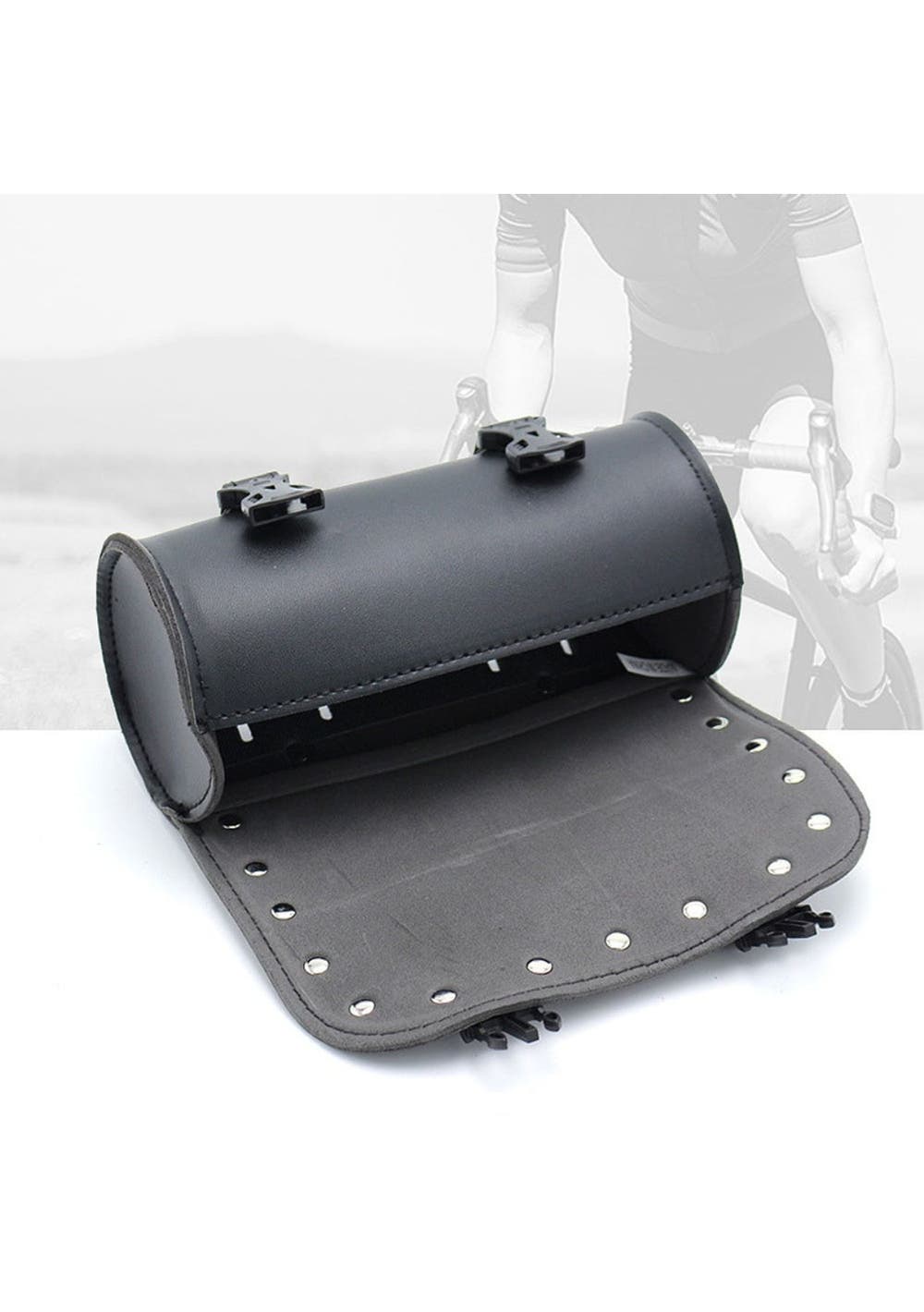 Product Description:ÔªøCrafted from durable materials, this bag is made to withstand the elements and keep your tools safe and secure. ÔªøIts versatile design allows for easy installation on various parts of your bike, such as the sissy bar, front forks, handlebar, tail rack, and side frame. ÔªøThe bag measures 21cm*10cm*10cm, making it compact enough to fit on your bike without being too bulky. ÔªøPlus, its quick release buckle closure ensures quick and easy access to your tools whenever you need them. ÔªøÔªøÔªøProduct Specification:ÔªøMaterial: Faux leatherÔªøColor: Black ÔªøSize: 21cm*10cm*10cm Weight: 179gFunction: Motorcycle Roll Bag Side PannierÔªøÔªøÔªøPackage Inclusion:Ôªø1 x Tool BagÔªø2 x Straps