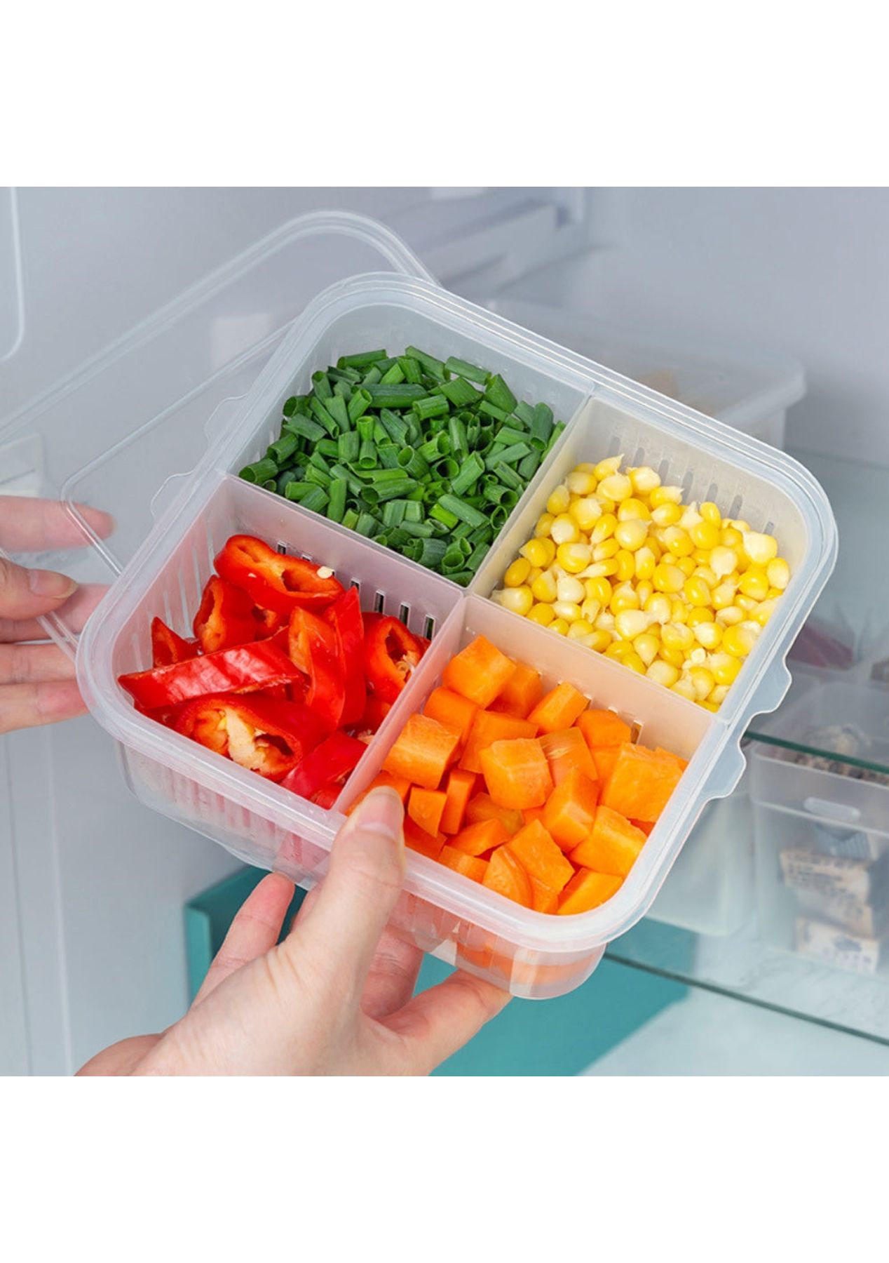 Product Description: The Refrigerator Storage Box with 4 or 6 grids is the perfect solution for organizing your food, vegetables, and fruits while keeping them fresh. Designed with convenience and practicality in mind, this storage box allows you to neatly arrange your ingredients in separate compartments, ensuring easy access and preventing cross-contamination. Whether you're meal prepping or simply storing leftovers, this box is a must-have for any kitchen. One of the standout features of this storage box is its grid design. The compartmentalized sections allow you to store different types of food while keeping them separated. Its sealed, odor-proof design ensures that your fridge stays fresh and free from any unwanted smells. Additionally, the drain feature effectively filters out excess water, keeping your food crisp and extending its freshness. Made from food-grade PP material, this storage box is designed to handle low temperatures, making it suitable for use in the refrigerator at temperatures as low as -20°C. This durability ensures that your food remains stored safely without any risk of spoilage. Its compact and portable design also makes it ideal for picnics, allowing you to easily transport chopped vegetables, fruits, and more. Whether you're storing minced garlic, ginger, vegetables, or fruits, this Refrigerator Storage Box is a versatile and reliable tool for any kitchen. Its secure sealing keeps your ingredients fresh, while its easy-to-use design enhances your meal preparation and storage experience.Product Specification:Material: Plastic + PP Color: White 6 Grids Size: 22.8x16x8.5cm 4 Grids Size: 17x15.5x7.5cm Weight: 240 g Function: Refirgerator Storage BoxPackage Inclusion:1 x Refirgerator Storage Box