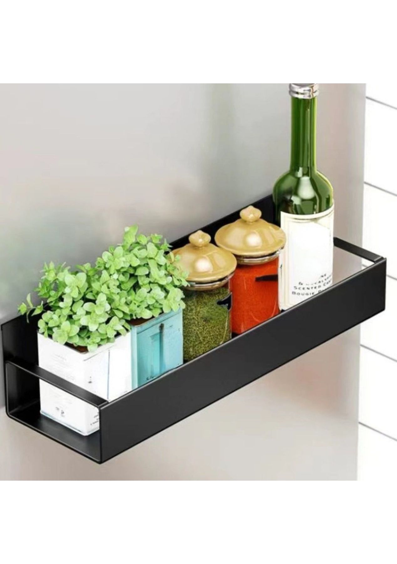 Product Description: The Magnetic Storage Shelf is the perfect solution for organizing your kitchen and maximizing space. Designed to attach securely to the side of your refrigerator, this shelf offers a sturdy and stable storage option for spice jars, condiments, and other everyday kitchen essentials. With no drilling or assembly required, this magnetic organizer ensures a hassle-free installation while providing an elegant storage solution. Crafted from high-quality iron with a spray-painted coating, the magnetic shelf is durable, rust-resistant, and built to last. Its strong magnetic backing ensures it stays securely in place even with heavy items. The rounded corner design prevents bumps and scratches, making it a safe and practical addition to your kitchen. This magnetic storage shelf offers versatile storage options, with raised edges that keep your items from slipping. It provides a neat and organized space for spices, coffee syrups, utensils, and more. Whether you need extra refrigerator storage or additional organization in your kitchen, this shelf is designed to meet your needs. With its sleek design and high adsorption force, the Magnetic Storage Shelf is perfect for a variety of applications. Use it to store kitchen essentials, tea bags, snacks, or even books in other rooms. It’s an ideal organizer for the kitchen, washroom, or even a classroom, helping keep your space tidy and organized while adding a modern touch.Product Specification:Material: Cast IronColor: BlackSize: 29.5x9.5x5 cmWeight: 2.26 kgFunction: Magnetic Storage ShelfPackage Inclusion:2 x Magnetic Storage Shelf