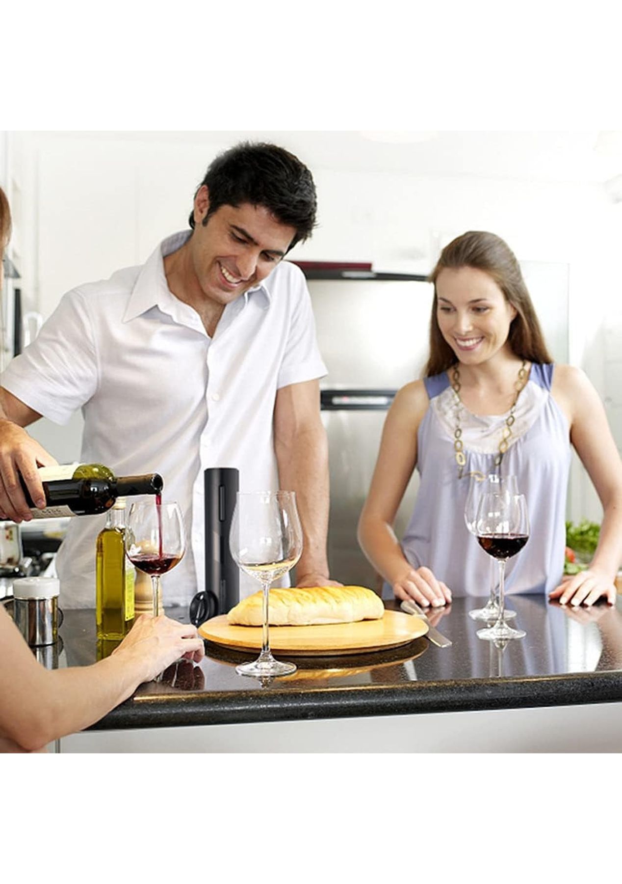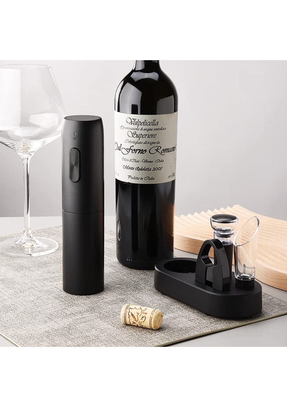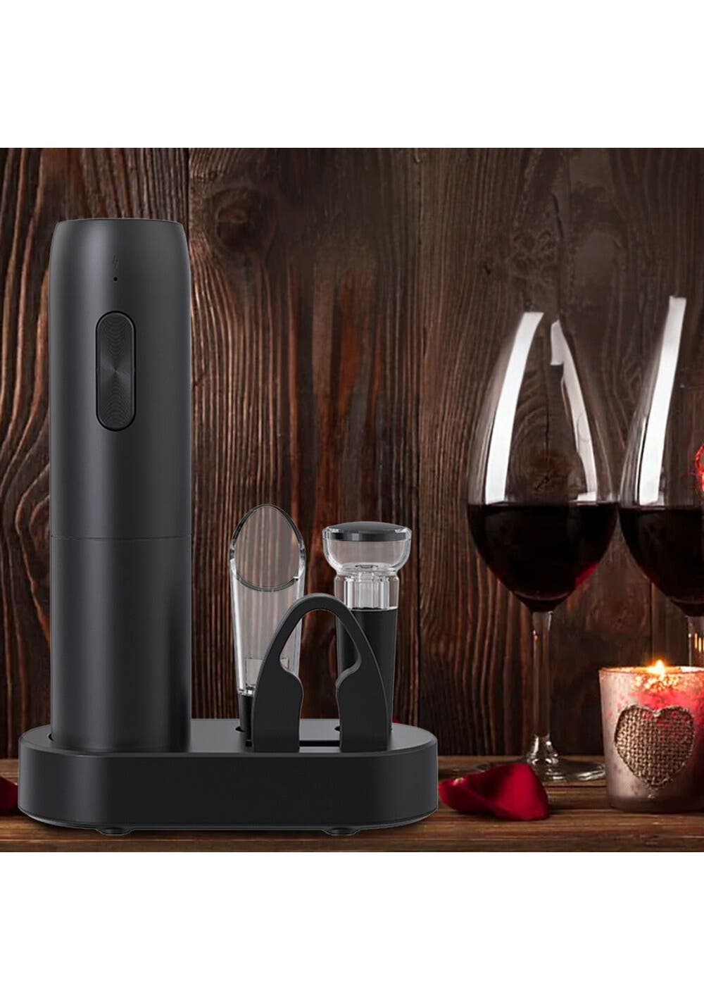 Product Description:Exquisite all-in-one wine bottle opener set offers everything needed to start enjoying the finest wines! With this set, opening wine bottles and pouring becomes a seamless experience. Quick cork extraction is achieved with the battery-operated rechargeable electric wine opener, which opens any traditional wine bottle with minimal effort. It operates noiselessly and quickly, safely removing corks in seconds. The set includes an electric bottle opener, vacuum fresheners, a wine aerator, a foil cutter, and an ABS charging base. This multi-functional package caters to all the needs in the red wine drinking process, making it indispensable for wine enthusiasts. Convenient storage is provided by the elegant LED charging base, which allows for simultaneous charging, storage, and display of the electric wine bottle opener. It’s a stylish addition to any kitchen countertopProduct Specification:Material: Aluminum Color: Black Size: 21.5x4.8 cm / 215x48 mm Weight: 420g Function: Wine openerPackage Inclusion:1 x Wine bottle opener 1 x USB charging cable 1 x Instruction manual