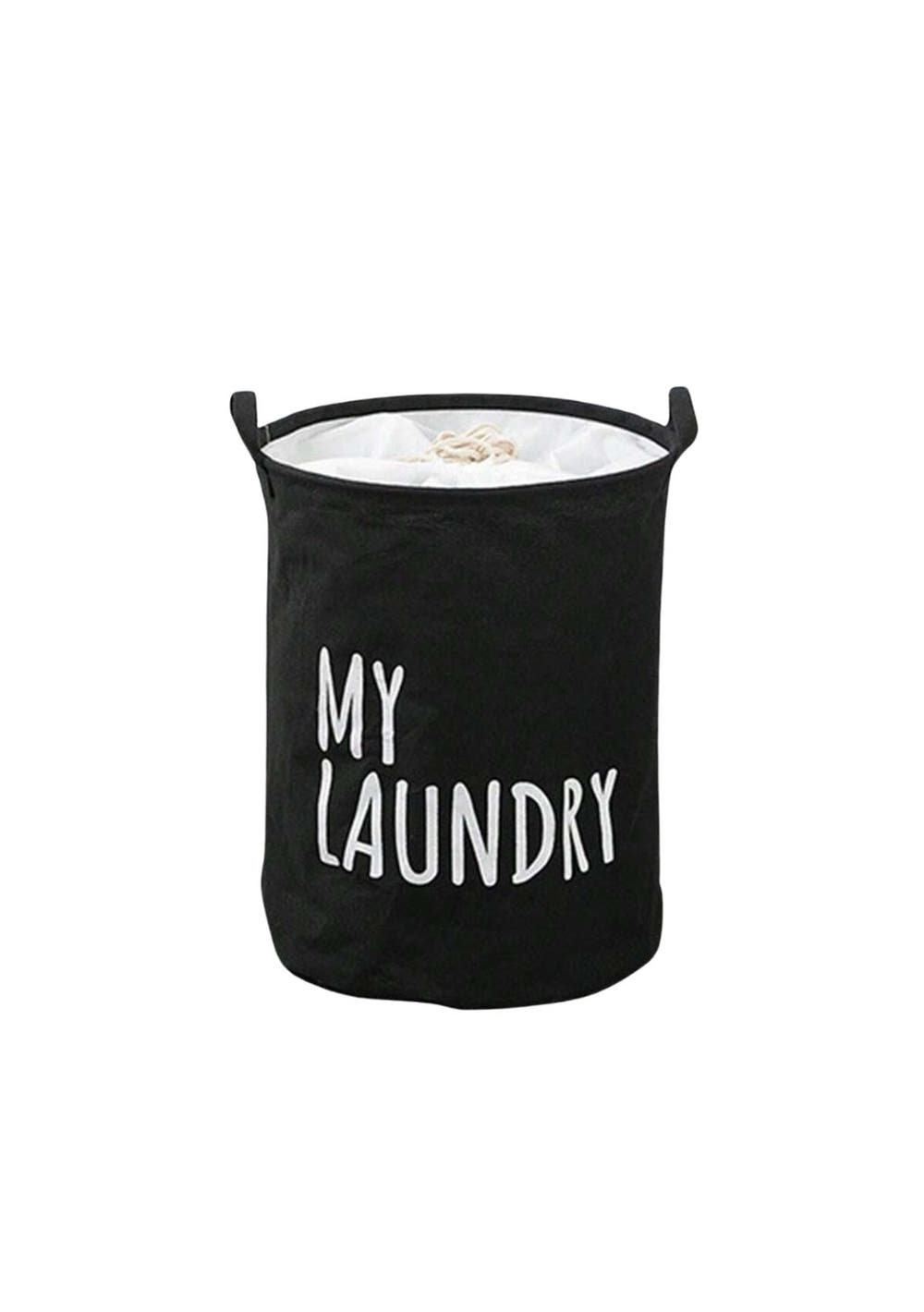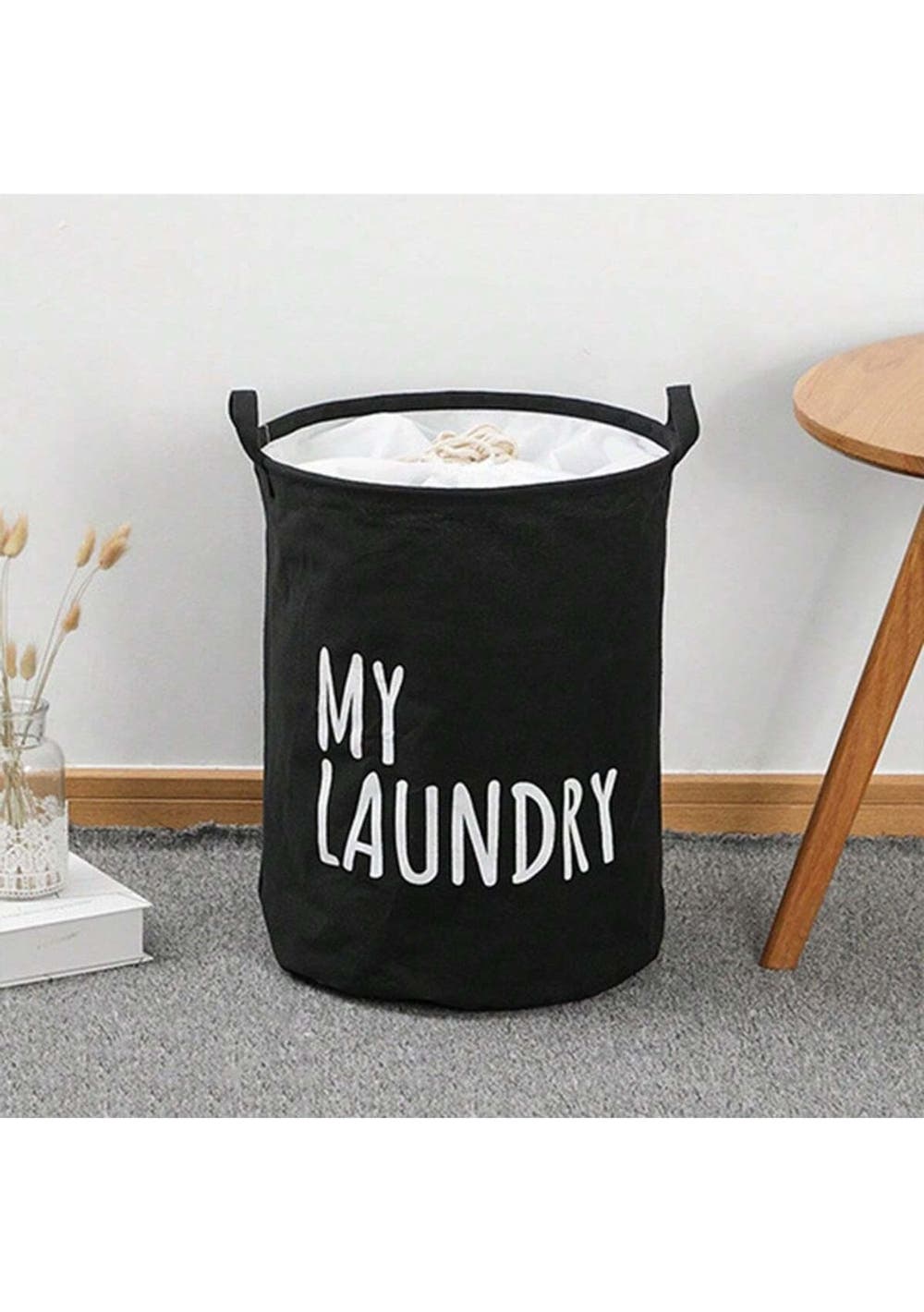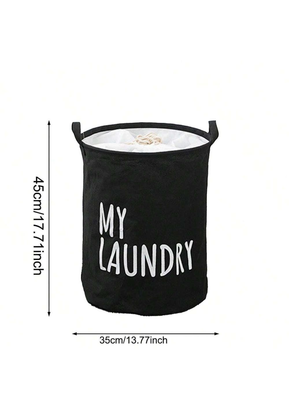 Foldable Drawstring Laundry Basket Large Capacity Waterproof Clothes Storage Basket For Home Bathroom Organizer - Black
