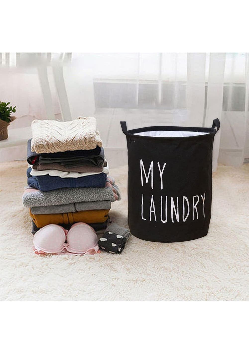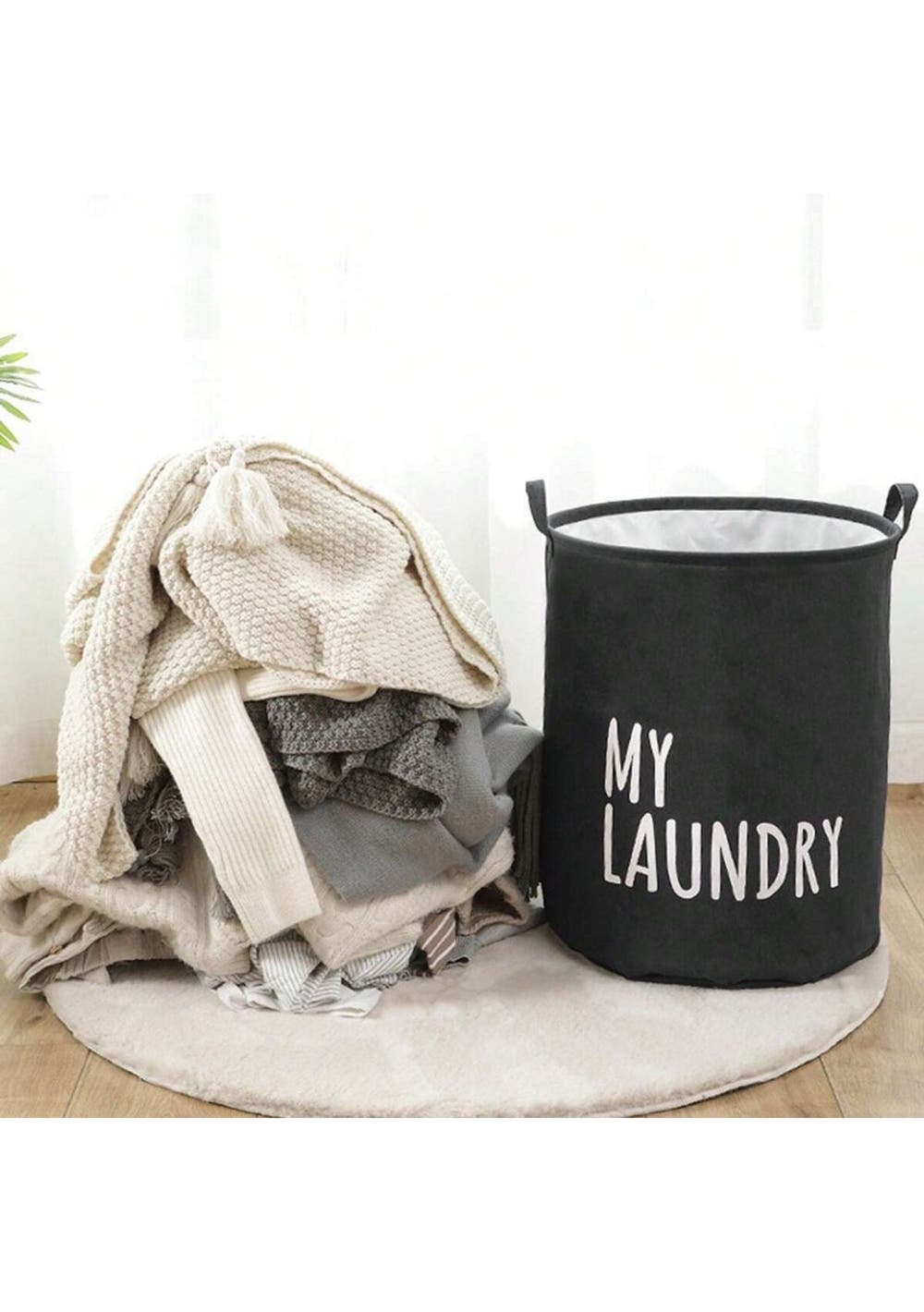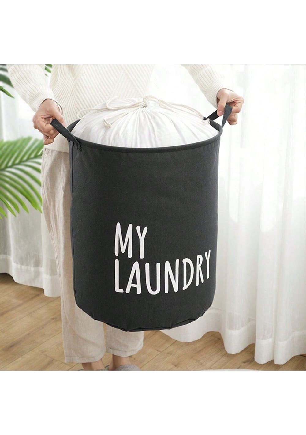 Foldable Drawstring Laundry Basket Large Capacity Waterproof Clothes Storage Basket For Home Bathroom Organizer - Black