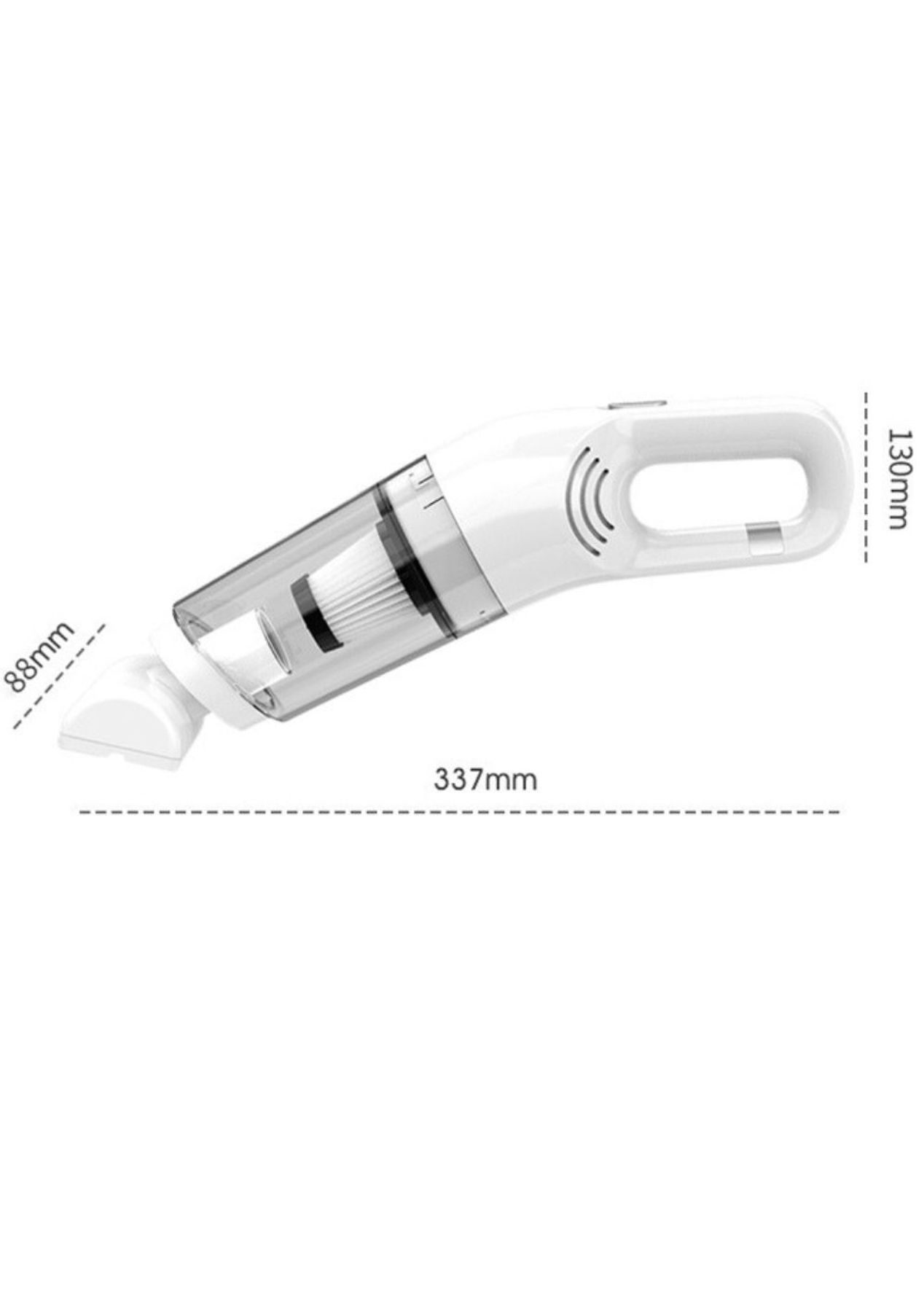 Product Description:Introducing the Handheld Home Vacuum Cleaner, your ultimate cleaning companion for home and car use. This rechargeable, wireless vacuum offers powerful 10,000PA suction to tackle dust, pet hair, and debris effortlessly.Designed for versatility, it transitions seamlessly between home and car cleaning tasks. Its compact, portable build ensures convenience, while the dual-purpose design makes it a must-have for every household. The high-performance suction technology captures even the tiniest particles, leaving surfaces spotless. With its rechargeable battery, enjoy the freedom of cordless cleaning anytime, anywhere. Say goodbye to mess and hello to efficiency with this powerful, lightweight dust catcher. Perfect for pet owners, busy households, or on-the-go cleaning needs. Product Specification: Material: ABS Color: Black, White Size: 377 x 88 x 130mm Weight: 792g / 0.792kg Power: 120 W Voltage: 7.4V Capacity: 0.35L Vacuum: 100000Pa Power Supply: USB Charging Cable Function: Bedding brush Package Inclusion: 1 x Vacuum bedding brush