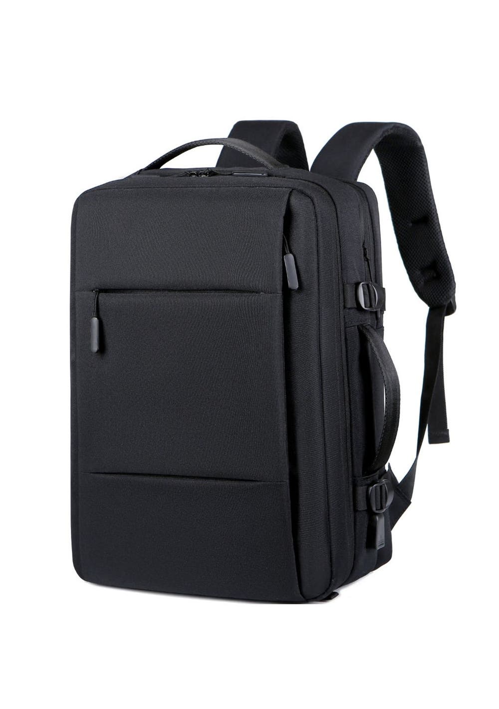 Large Capacity Expandable Travel Backpack with USB Port - Black