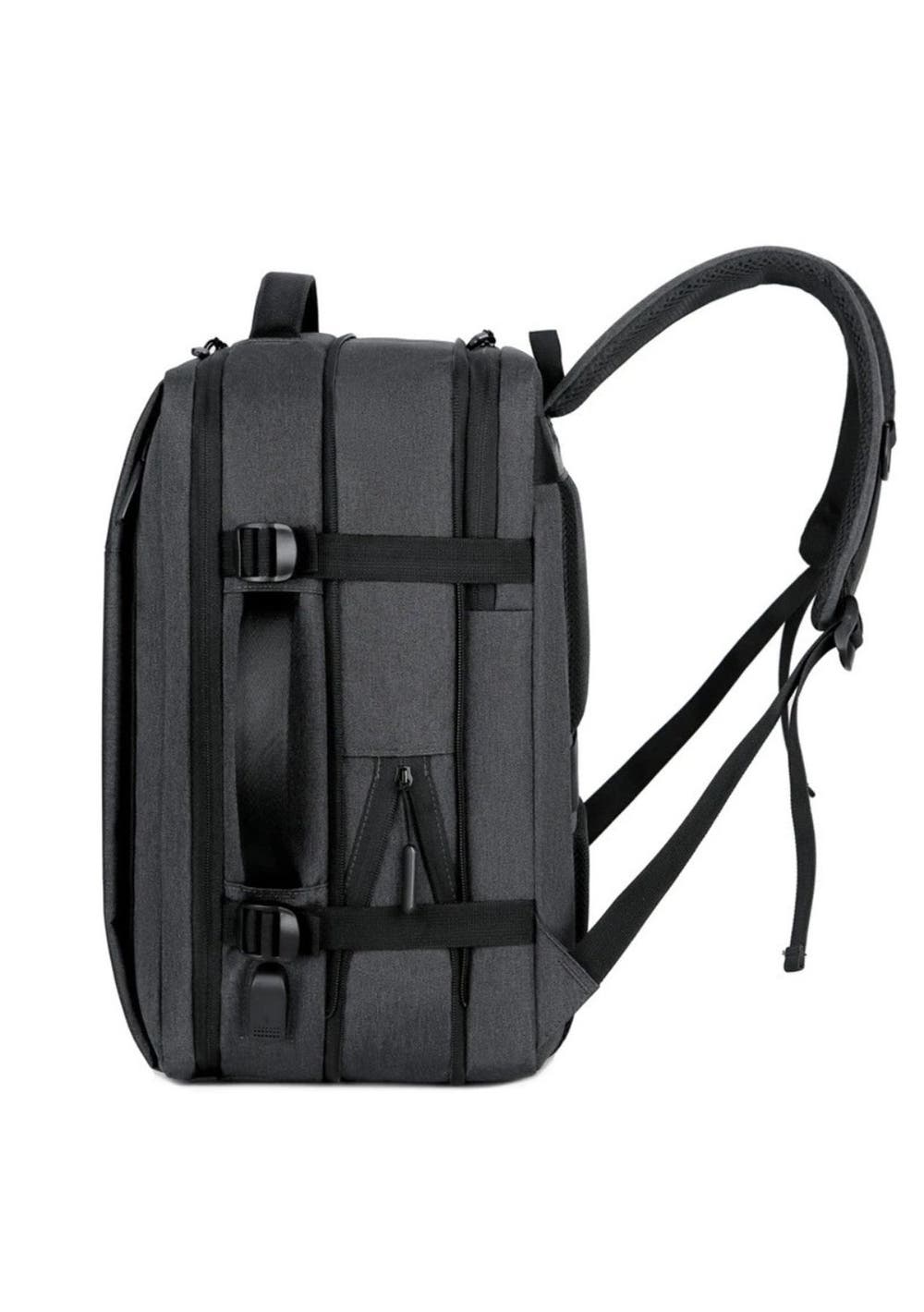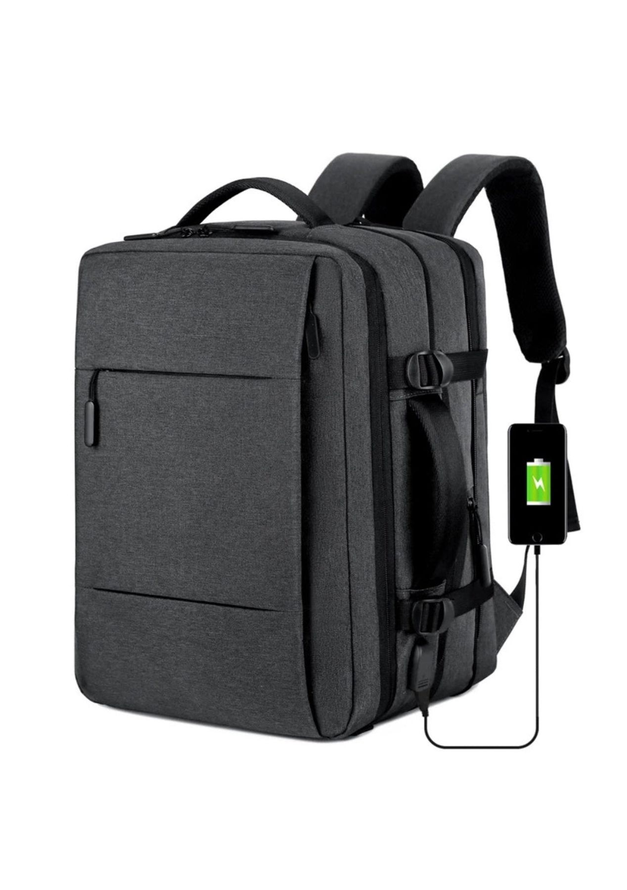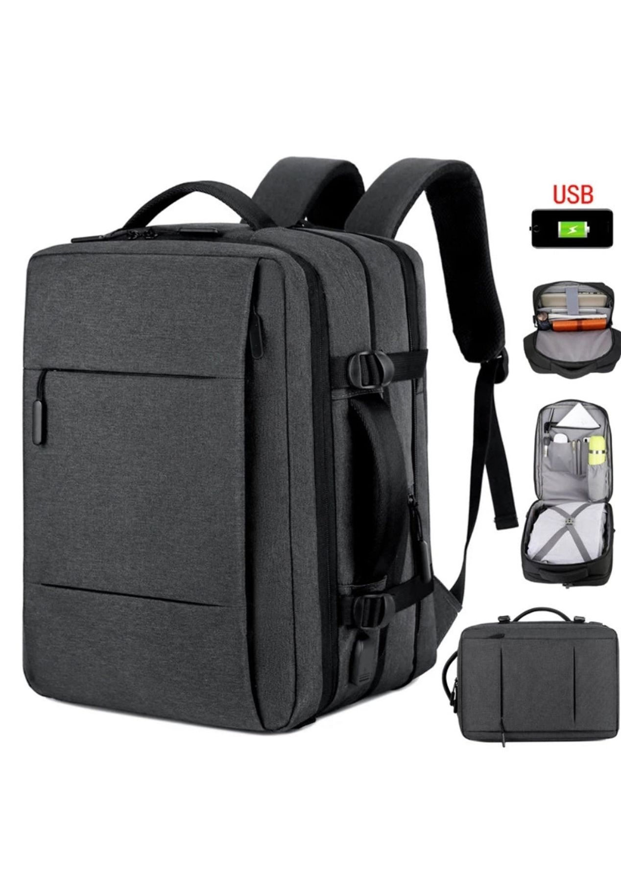Product Description:The Large Capacity Expandable Travel Backpack with USB Port is designed to meet all your travel and commuting needs. With a spacious interior, it easily accommodates your essentials, making it ideal for long trips or daily commutes. Its expandable feature provides additional storage space while maintaining comfort and ease of use.Crafted from waterproof material, this backpack ensures your belongings stay dry in any weather. Whether you're traveling or commuting in the rain, you can rest assured that your items will remain protected. The durable construction makes it a reliable companion for any adventure.This backpack also comes with a convenient USB port, allowing you to charge your devices on the go. Simply connect your power bank, and you're ready to keep your phone or other devices powered up, even while you're on the move.Additionally, it features a multifunctional interior compartment, an anti-theft design, and a tie rod fixing strap that fits perfectly on your suitcase, making it the ultimate travel companion for both convenience and security.Product Specification:Material: NylonColor: Grey, BlackSize: 42 x 30 x 15 cmWeight: 1.2 kgFunction: Travel BackpackPackage Inclusion:1 x Travel Backpack