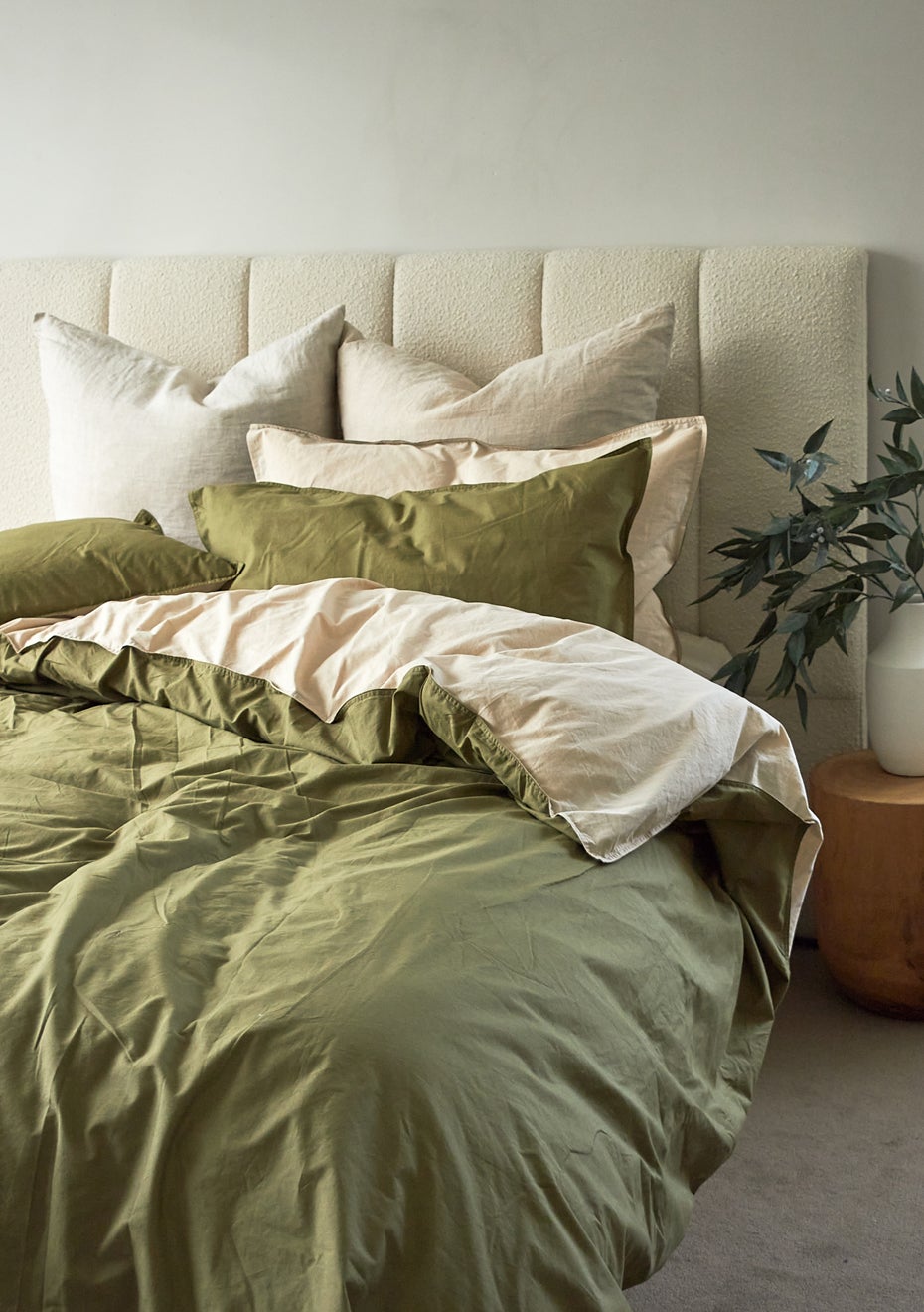 George Collective - Stonewashed Cotton Reversible Duvet Cover Set - California King - Moss/Parchment
