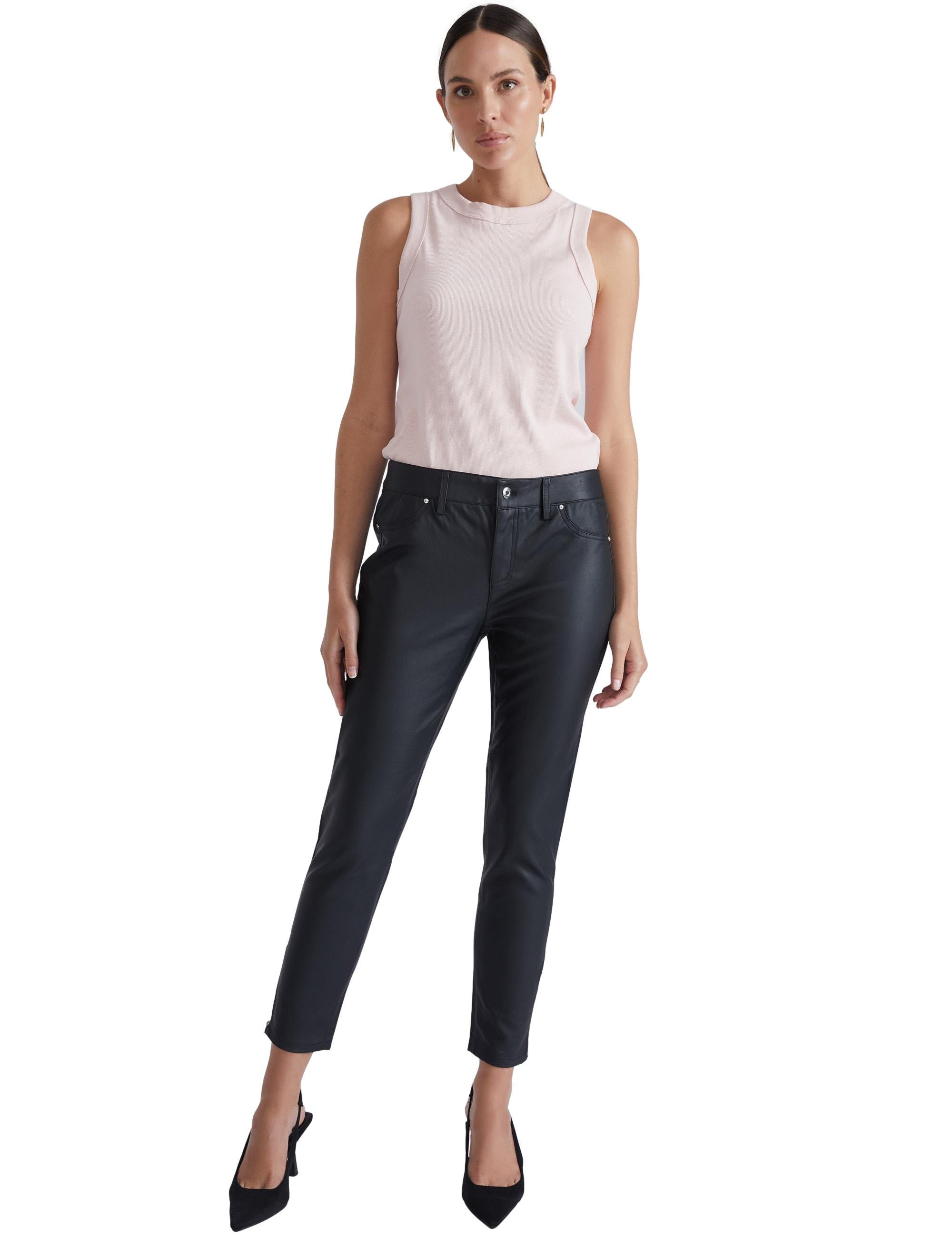 Katies - Womens - Pants / Trousers - Summer - Black - Ankle - Skinny / Slim Leg - Mid Rise - Vegan Leather - Casual Fashion - Office Wear Work Clothes