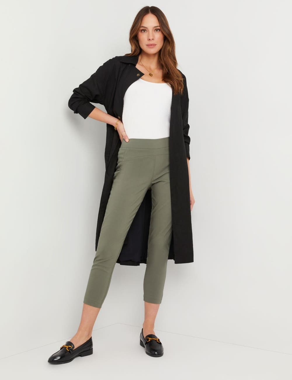 KATIES - Womens Pants - Green Ankle Length - Slim Leg Elastane Fashion Trousers - Khaki - High Waist - Classic - Casual Work Clothes - Office Wear