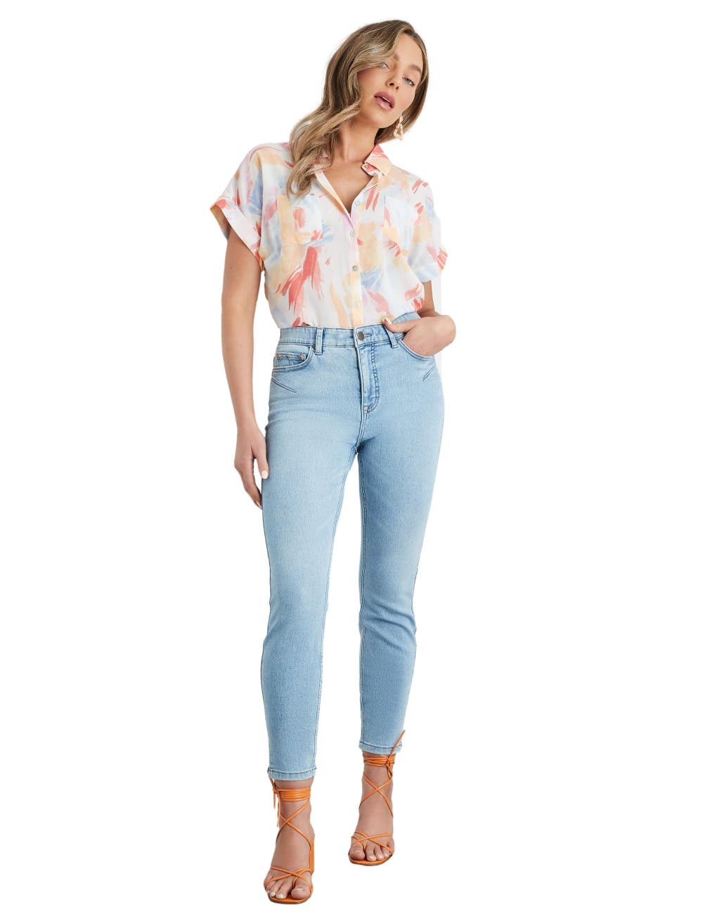 Exuding quality and sophistication, these women's denim jeans by Rockmans are a must-have for your casual wardrobe. The mid-rise waist offers a comfortable fit, while the light wash adds a touch of elegance to any outfit. Craft with durable denim material and featuring a solid print, these jeans effortlessly blend style and versatility. Perfect for various casual occasions, these calf-length jeans are a timeless addition to your fashion collection. Material: Cotton / Polyester / Elastane The item you are purchasing today is being sold by Mosaic Brands – Mosaic Brands Ltd (formerly Noni B Limited) has grown to be the largest specialty fashion retailer group in Australia. Our brands include Millers, Rockmans, Noni B, Rivers, Katies, Autograph, W. Lane, Crossroads, Beme and EziBuy. We span the country with over 1,000 stores nationally. Our collective purpose is to help our customers express their love of life – by embracing the truth that every occasion is a special occasion worth feeling fabulous for.We dispatch our item/s within 24-48hrs and deliver to Sydney, Melbourne, and Brisbane in 2-3 days. Outside of these major metropolitan areas it will take a little longer, but we strive to get it to you as soon as possible.
