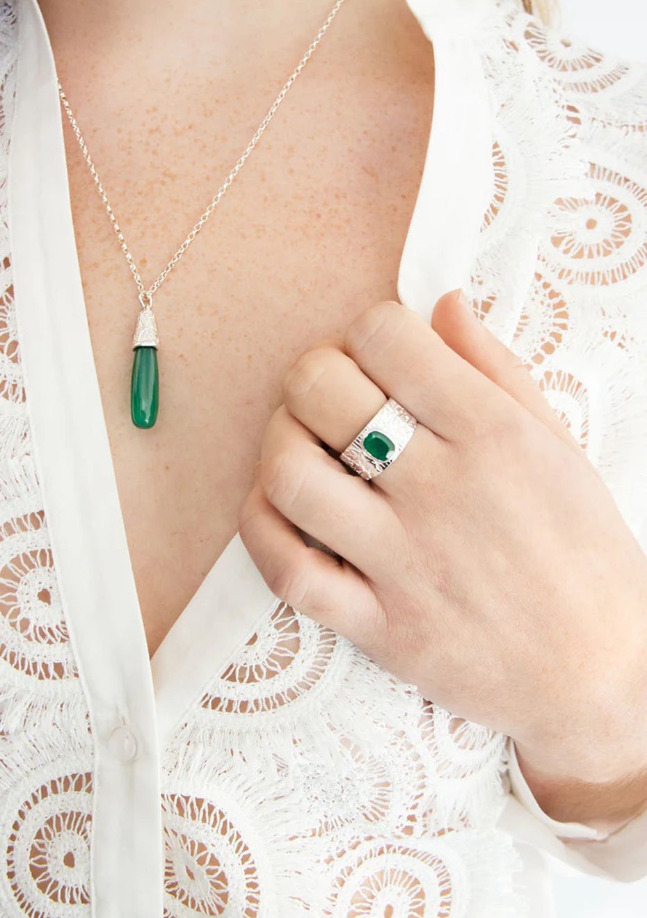 Cathy Pope Jewellery - Green Onyx Engraved Silver Ring
