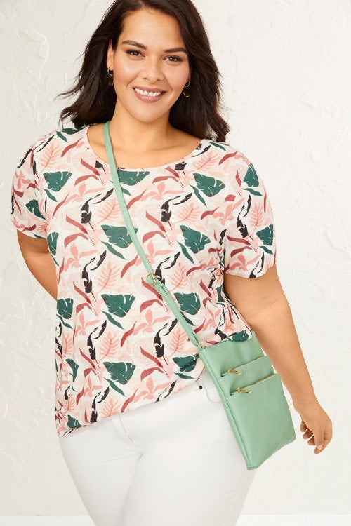Womens Sara Round Neck Linen Tee - Plus Size Curvy