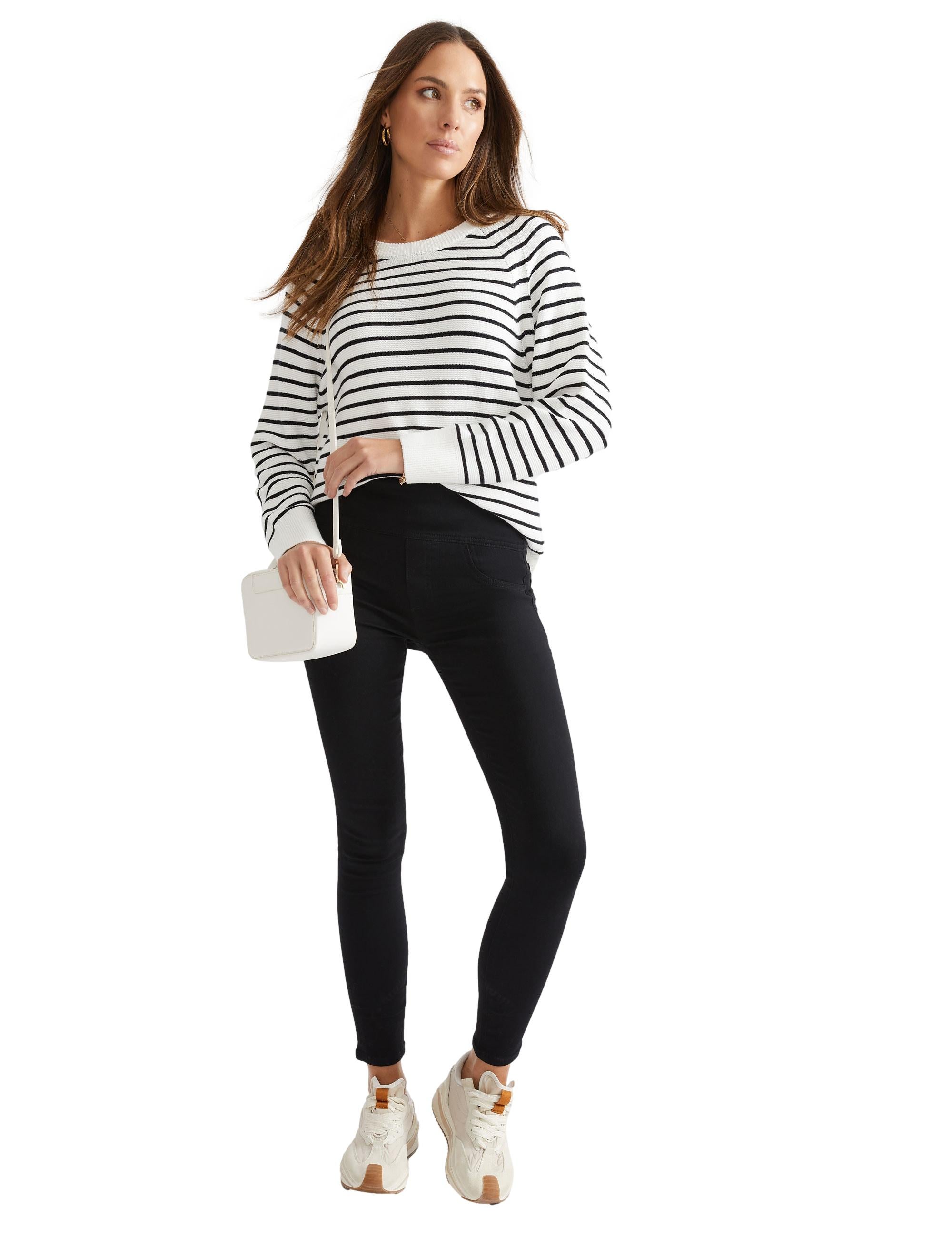 Katies - Womens - Jeans / Denim Pants - Winter - Black Cotton - Straight / Regular - Skinny / Slim Leg High Waisted - Stretch Elastane - Ankle Length