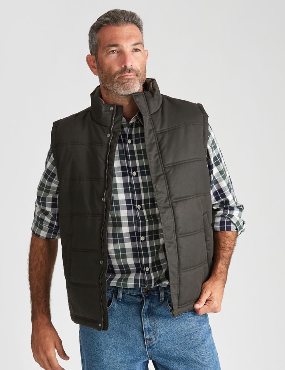RIVERS - Mens Regular Vest - Brown Winter Jacket - Puffer - Wax Look - Casual - Sleeveless - Gilet - Padded - Work Wear Fashion Clothing Office Outfit