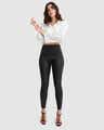 Adding some comfort to the leather legging trend, the city slicker coated legging offers a cotton blend solution to the legging of the season. Made of coated denim, it has just enough shine to catch the eye and cut in a flattering yoga pant fit with a back zipper closure.