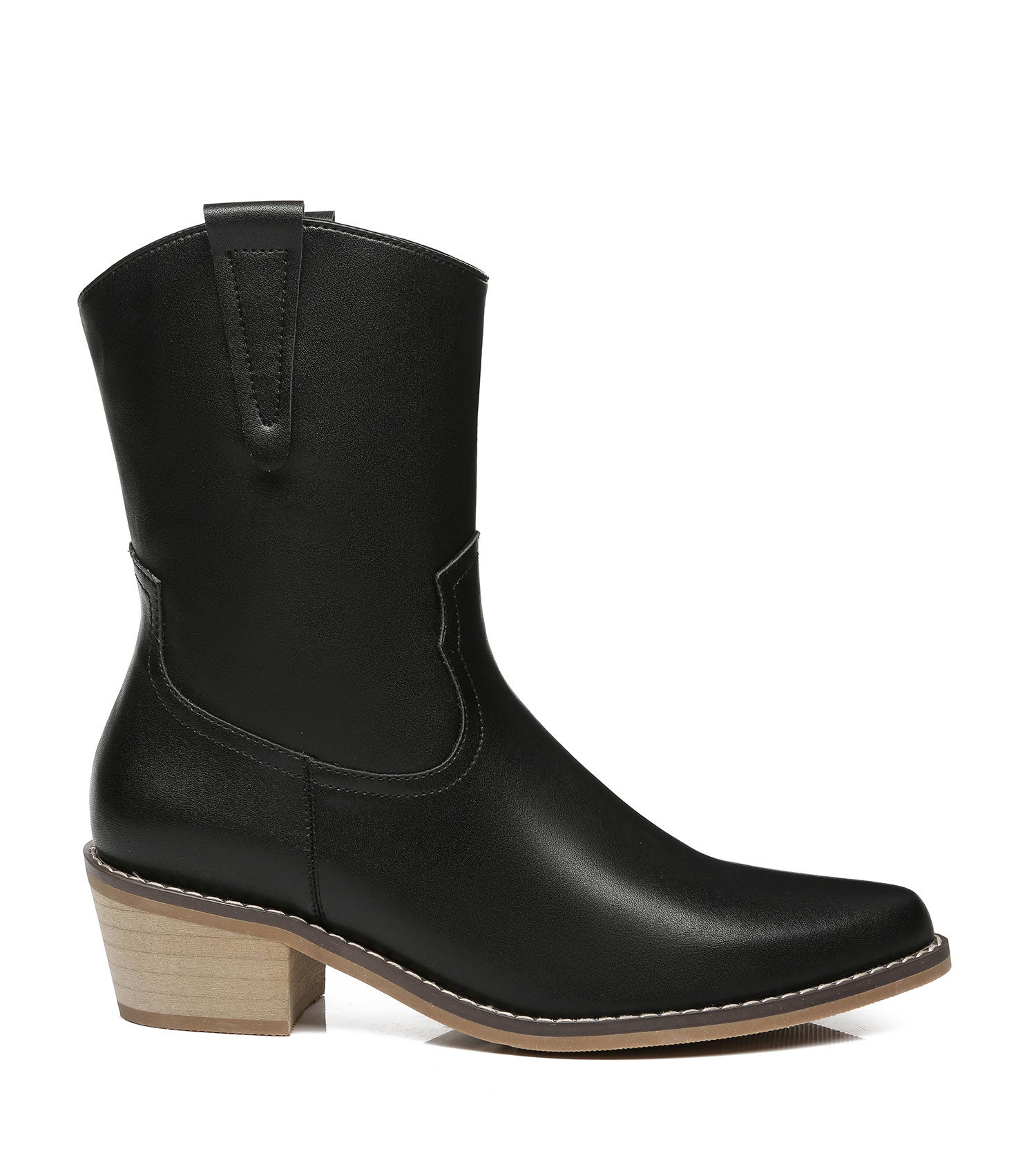 For a touch of the wild west look no further than our Claudia mid-calf boots. Featuring a pointed toe shape, this modern western boot also features an exposed sole and a short wood-stack heel. In two versatile colours, these boots will complement any outfit.