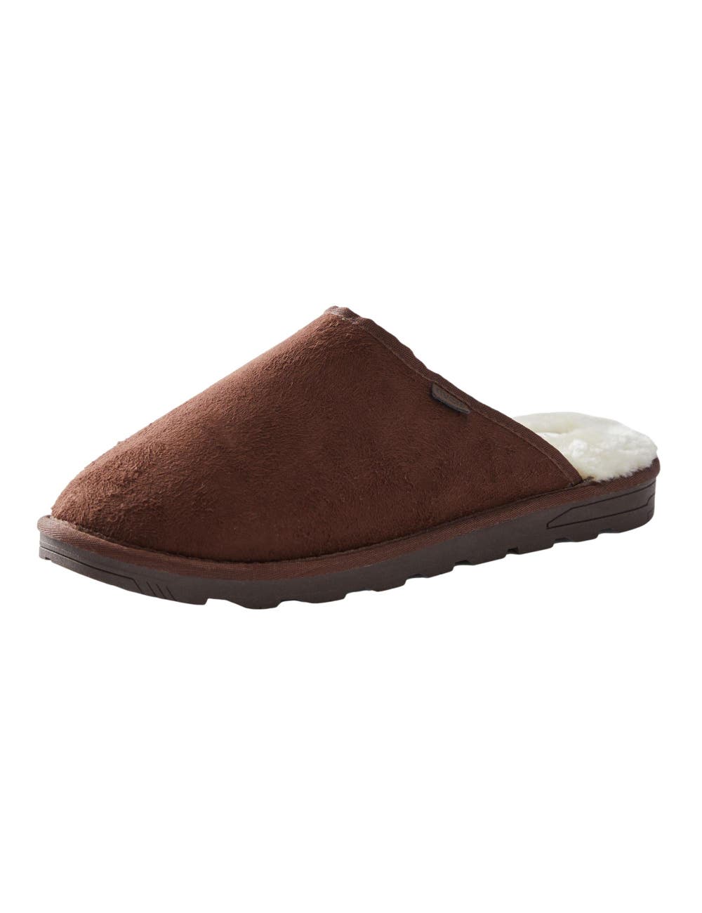 rivers - Mens Winter Slippers - Brown Mules - Slip On - Faux Sheepskin Shoes - Closed Toe - Cozy Fleece Lining - Casual Fashion - Warm Footwear