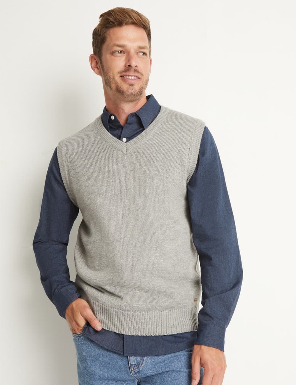 Rivers presents a sophisticated men's knitwear piece that exudes timeless elegance. This sleeveless V-neck top in solid print offers a fitted silhouette, making it a classic addition to any wardrobe. With an ideal regular length, this garment combines comfort with style seamlessly. Elevate your look with this statement piece from Rivers and embrace understated sophistication effortlessly.Material: Acrylic. Dispatch within 1-2 days (please make sure your address is correct). Delivery times into New Zealand are as follows:- Auckland 2-4 days | Wellington 2-4 days | Christchurch 4-7 days | North Island 3-5 days | South Island 4-8 days