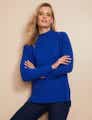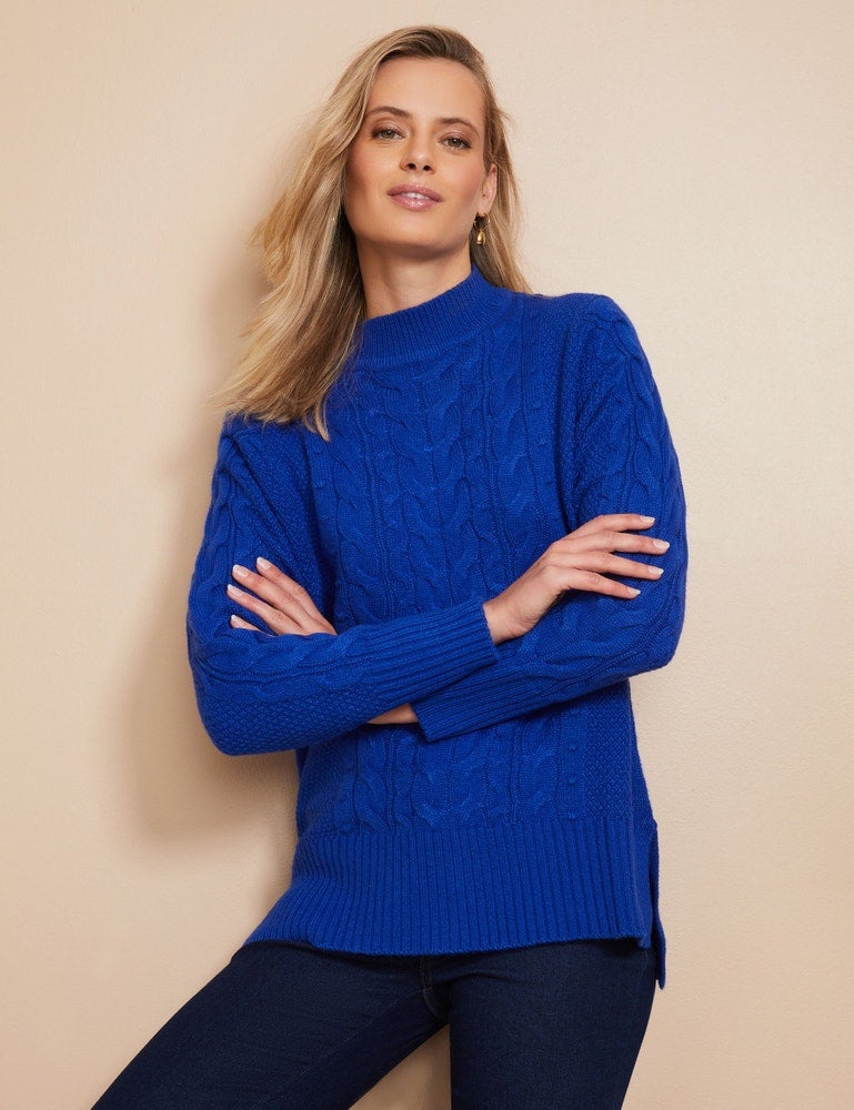 W LANE - Womens Jumper - Regular Winter Sweater - Blue Pullover - Cotton Clothes - Knitwear - Long Sleeve - High Neck - Cable Knit - Casual Work Wear