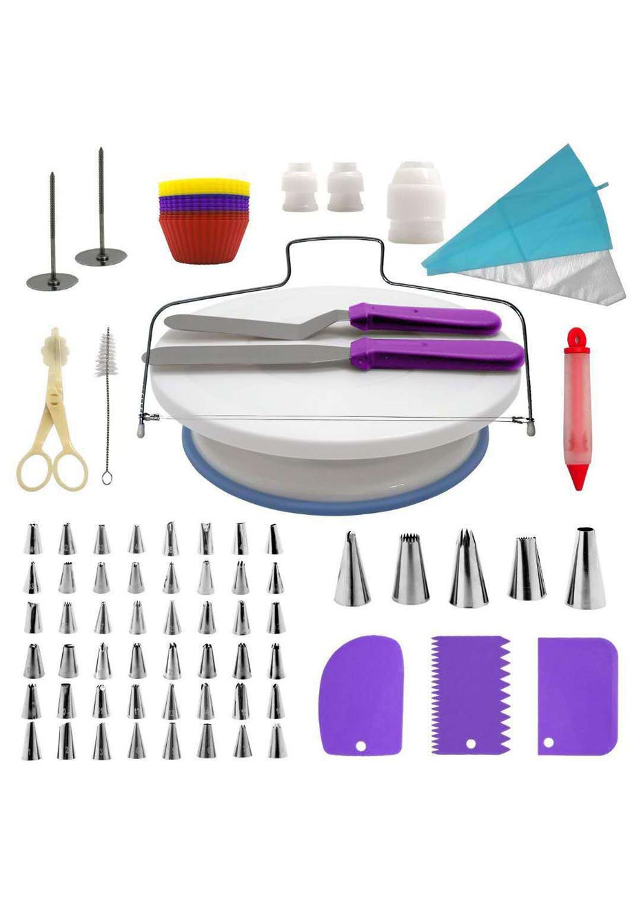 Comes with rotating turntable brackets, baking supplies, icing trowels and smoother, frosting and piping bags, pastry tools, cake silicone molds.