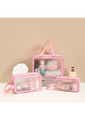 3Pcs Transparent Travel Waterproof Cosmetic Bag Set-Pink