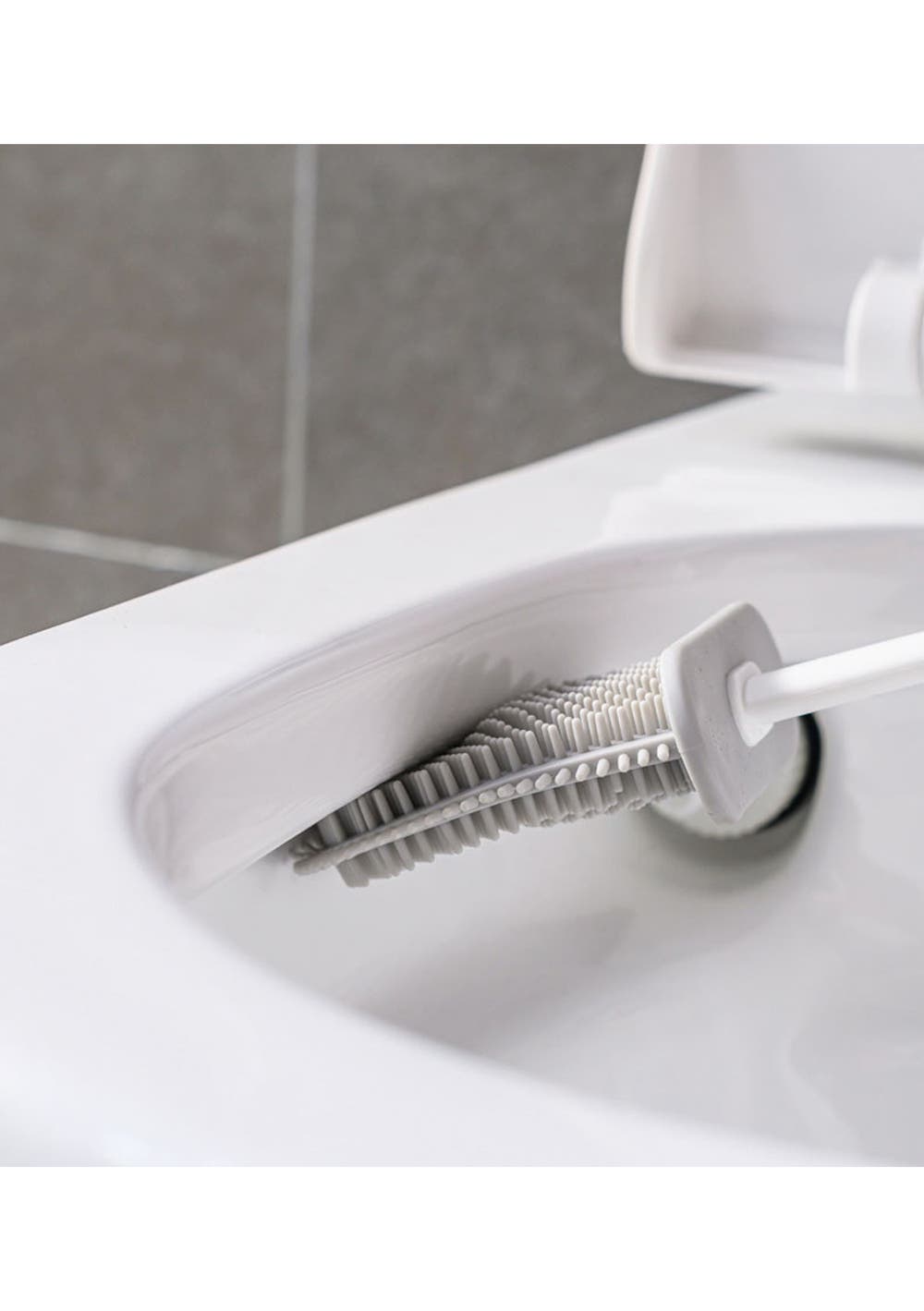 2 in 1 Flex Silicone Toilet Brush with Holder-Dark Gray