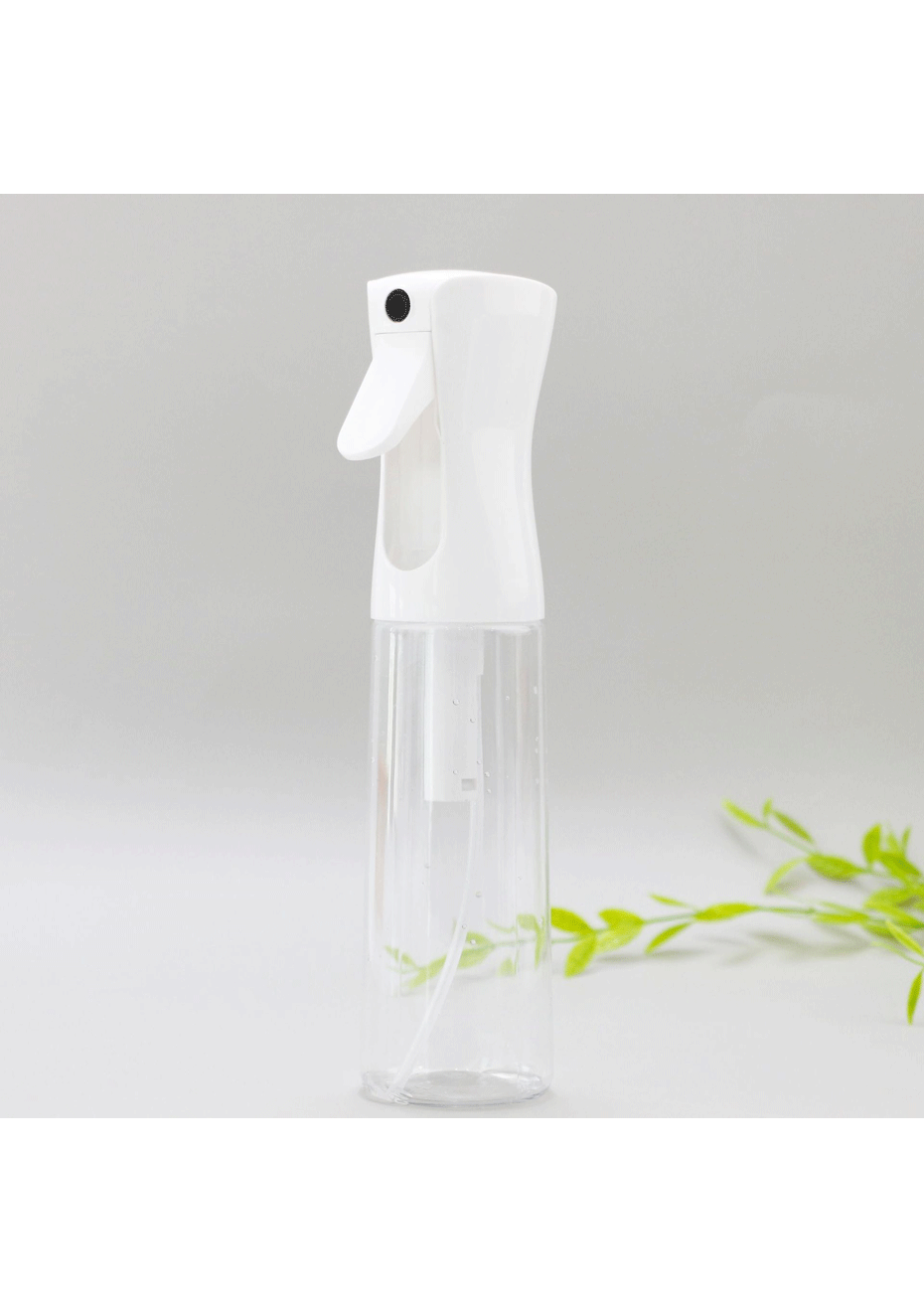 300ml Continuous Spray Bottle for Hairstyling, Cleaning,Gardening-White<br>Material: PP PET<br>Product dimensions (LWH): 6×24.5cm 300ml <br>Package dimensions (LWH): 5.5 x8 x25cm<br>Weight: 120g<br>Feature<br>MULTI-PURPOSE EMPTY SPRAY BOTTLE: This Multifunctional Bottle can be used for various household and beauty purposes like hair styling, makeup, skin care, cleaning and plant spraying. Used in homes, beauty schools, barber shops, hair leg schools and cosmeticology. Perfect for showering your pets or birds.<br>CONTINUOUS 360 DEGREE SPRAY WITH FINE MIST: Distributes water evenly and Produces a stream of sustained mist that lasts a few seconds, allowing large areas to be covered quickly and easily.<br>DURABLE AND CONVENIENT: Our Spray Bottle is Easily refilled and money-saving. The spray bottle is strong and not easily dented. It is durable and long-lasting. Reduces hand fatigue compared to traditional trigger and finger tip sprayers.<br>AEROSOL-FREE AND LEAK-PROOF SPRAY: Airless - No contamination - long shelf life - no odor with the bottle even if not being used in a few days. The hair spray bottle dispenses an aerosol-like spray without using any pressurized containers or hazardous propellant gases.<br>CAPACITY: 300ml. Height: 24.5cm. Diameter: 6cm; made of quality PET material, eco-friendly.<br><br>Package Include<br> 1 x Continuous Sprayer Hair Water Ultra Fine Mister Spray Bottle<br>