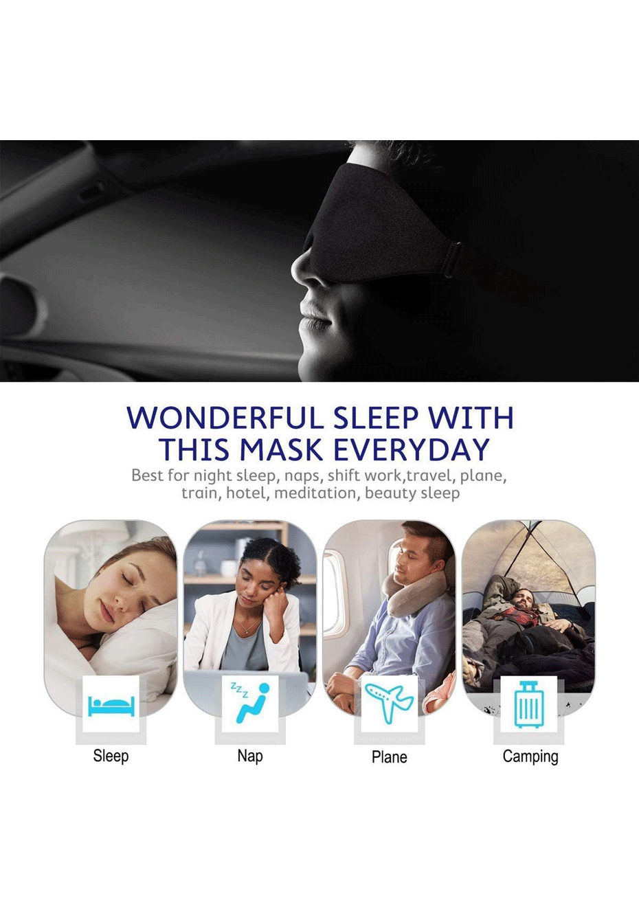 • Versatile Usage: Whether you're on a plane, at home, or taking a short nap at work, this sleep mask is your perfect companion. Offering unmatched comfort and total darkness, it’s ideal for meditation, travel, or any time you need peaceful shut-eye.