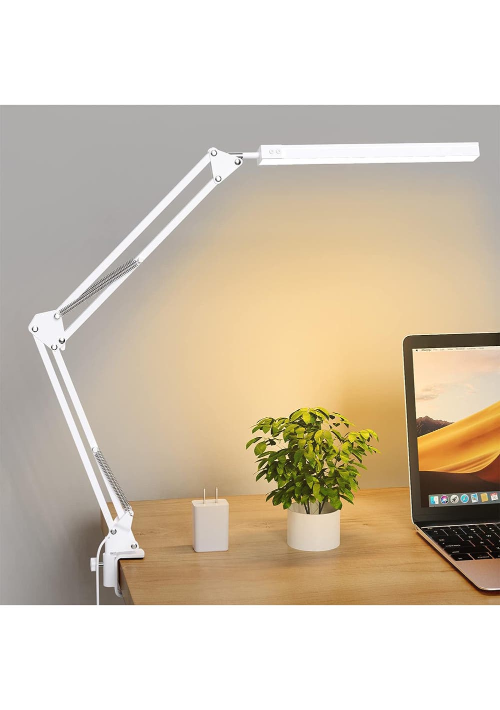 Swing Arm Desk Light With Clamp<br><br>Material: Metal<br>Package dimensions (LWH): 43 x 15 x 5 cm<br>Weight: 750g<br><br>Features:<br>• Eye-Care with Adjustable Brightness & Color Temperature: The long-arm lamp comes with a dimmable design, allowing you to adjust from warm to cool light (3000K to 6000K). Its uniform lighting prevents blue light damage, ensuring it’s suitable for all ages, from children to the elderly.<br>• Memory Function for Customized Lighting: Tailor the light according to your preference, and the lamp will remember it! The next time you turn it on, it defaults to your last setting, offering personalized lighting for various tasks.<br>• Versatile Uses: Whether you're working in your office, on your workbench, reading in your room, painting, or even in a nail salon, this lamp adjusts to suit every situation.<br>• Flexible Design with Sturdy Clamp: Save space with its foldable three-axis design, ensuring broader lighting coverage. The flexible arm allows you to direct the light where you need it. Its wide metal clamp, equipped with silicone pads, ensures a firm grip on tables up to ≤4.5cm thick.<br>• Energy-Efficient with Longevity: Powered by 80 LED light beads, this USB-powered lamp is not only easy to connect to any available USB port but is also more energy-efficient than traditional lamps. With a lifespan of up to 50,000 hours, it promises long-term reliability. The included adapter has a voltage of 5V/2A, and the power cord extends up to 59 inches.<br><br>Package Includes:<br>• 1 x Swing Arm Desk Light With Clamp