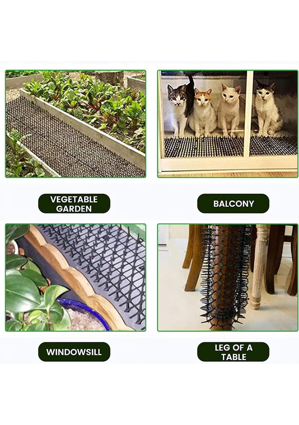 12 Pcs Cat Repellent Mat with Spikes<br>Effectively Deter Pets and Wildlife While Protecting Your Plants<br>Material: Plastic<br>Product dimensions (LWH): 15×20×2.8cm each <br>Package dimensions (LWH): 25x 17.5 x7.5 cm<br>Weight: 430 g<br><br>Safeguard your beloved greenery and home with our Cat Repellent Mats, offering a compassionate yet effective way to maintain your peaceful haven.<br><br>Safe and Humane Solution<br>• Humane Repellent: The flexible spikes are pet-friendly, preventing animals from scratching or digging in your garden without causing harm.<br>• Customizable Fit: Mats can be cut to any size and bent around trees or furniture to prevent unwanted climbing and scratching.<br>Versatile and User-Friendly<br>• Broad Use Cases: Ideal for safeguarding your lawn, flower beds, trees, as well as indoor furniture and valuables.<br>• Easy Installation: Cut to size, plant in the soil, and secure with included metal stakes and cable ties for a firm hold.<br>Package Included<br>• 12 Cat Repellent Mats<br>• 12 Garden Stakes<br>• 20 Cable Ties
