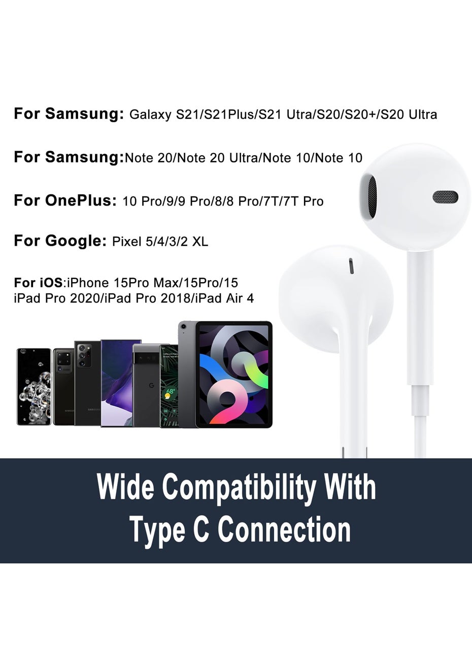 USB C In-Ear Earbuds for iPhone 15 & Android Phones