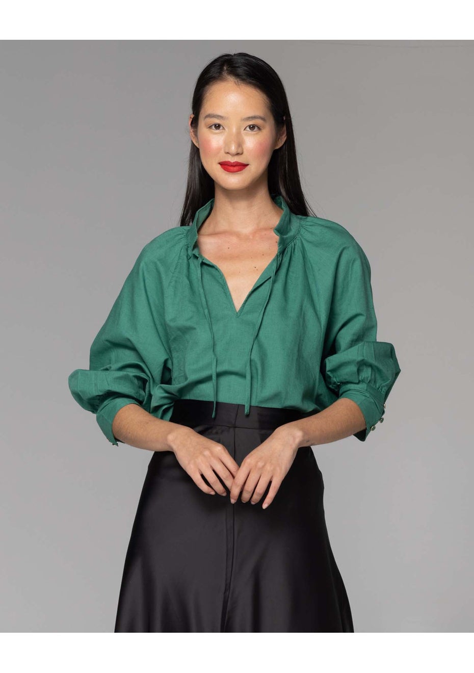Fate - Higher Ground Blouson Sleeve Top - Jade Green