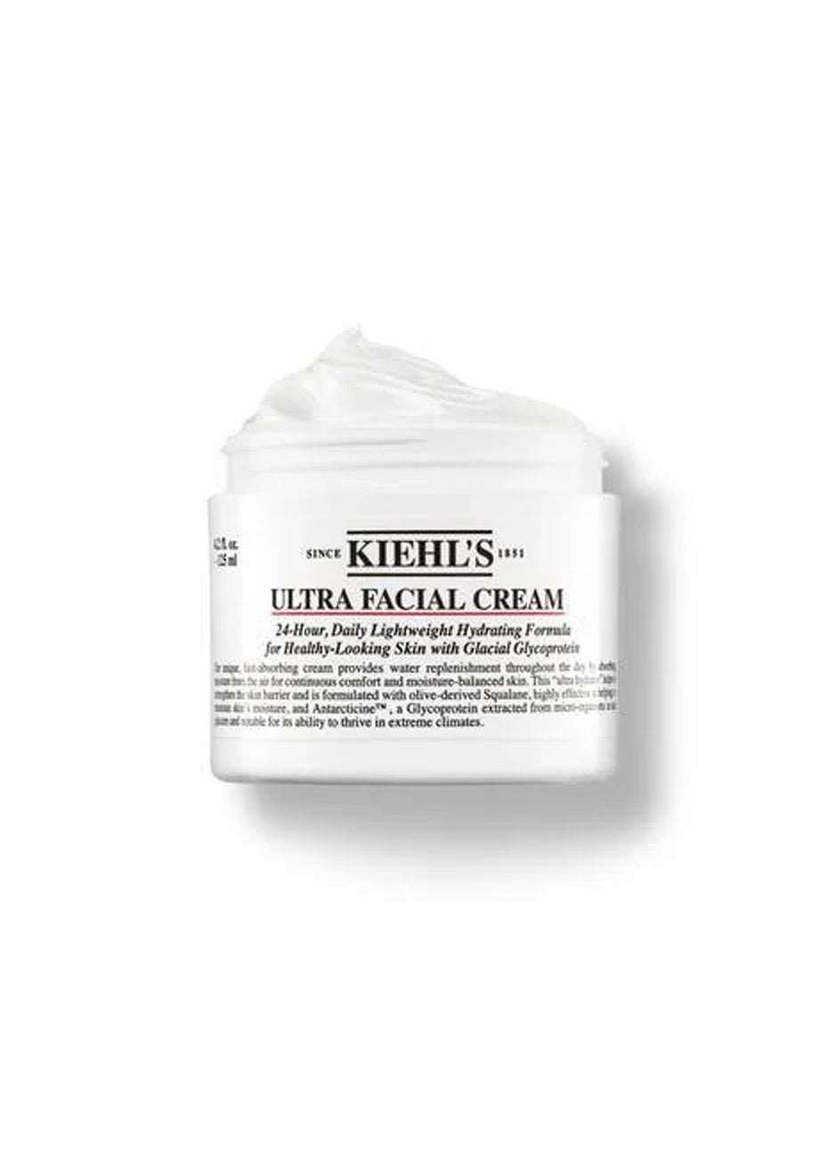Benefits: Hydrating •Exfoliating •Sulphate-free •Fragrance-free The #1 product by Kiehl's, this ultra-hydrator has a unique lightweight texture and offers 24-hour hydration. With each application - day or night - the skin is left 2.3x more hydrated, even in the driest areas. Non-greasy and extremely easy to wear, this iconic moisturiser is uniquely formulated for all skin types - even sensitive skin. Key ingredients Glacial glycoprotein: protects skin from changing temperatures, facilitating water retention of the skin. Avocado oil: to provide intensive moisture to the skin. Squalane: to help replenish skin’s barrier, keeping it soft, supple and moisturised. Made without Parabens, sulphates and fragrance. Usage Apply on clean facial skin to combat moisture depletion. Can be used day and night as the ultimate complement to your skincare routine.