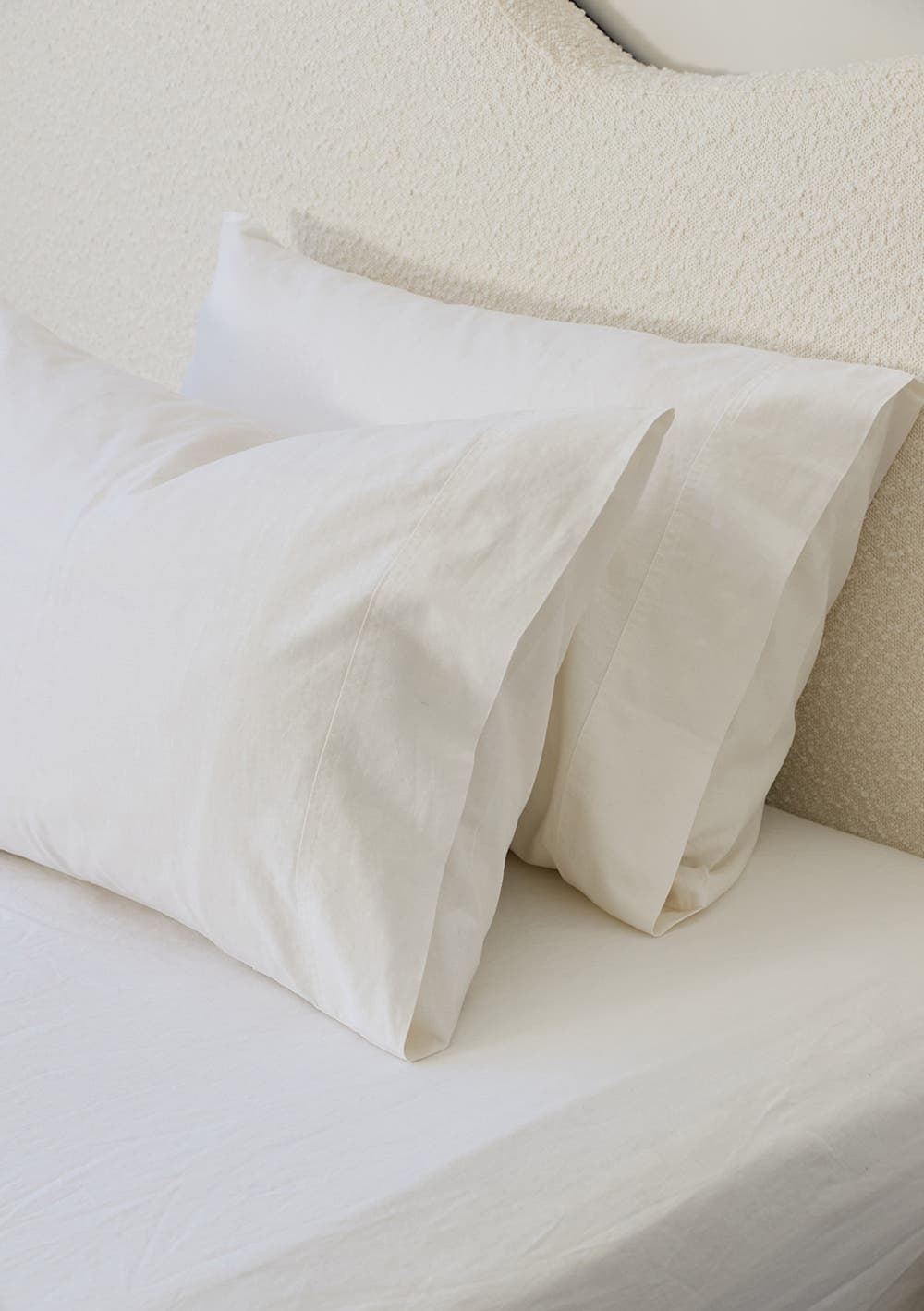 Level up your sleep experience with our George Collective Linen-Cotton bedding, designed for those who appreciate the perfect balance of comfort, style, and durability. Crafted from a luxurious blend of natural linen and soft cotton, this bedding combines the best of both materials to offer a uniquely breathable, moisture-wicking, and temperature-regulating sleep environment. Indulge in the timeless elegance and unmatched comfort of our Linen-Cotton bedding, where the natural beauty of linen meets the softness of cotton for a truly luxurious sleep experience. Perfect for those who value both style and sustainability in their home. Includes:  2 Pillowcases: 48cm x 73cm Relaxed and textured: 55% Linen 45% Cotton Quality Assured: Oeko-Tex Standard 100 certified Care for me: Cold gentle machine wash Wash dark colours separately Do not bleach or use enzyme detergents Line dry in shade Cool tumble dry Warm iron if required Do not dry clean ⊗ Avoid direct light sources PHOTOGRAPHY DISCLAIMER Colours of the product may appear slightly different from online images due to various factors such as studio lighting, editing process and individual device screen settings. While we make every effort to accurately represent our products online, we cannot guarantee exact colour matching every time. Your understanding is greatly appreciated.