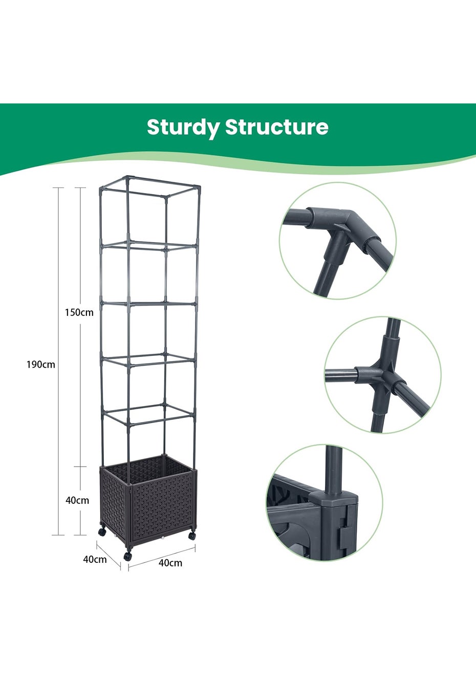 Extensible Design: The slide panel can connect with the corner connector rods on all sides. These rods can also serve as legs, elevating the garden bed.