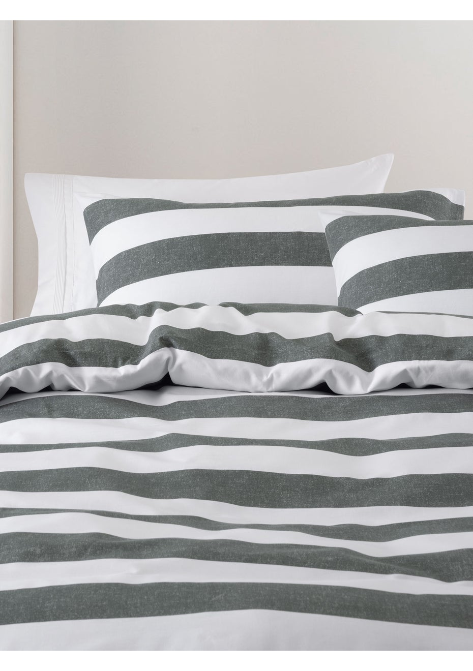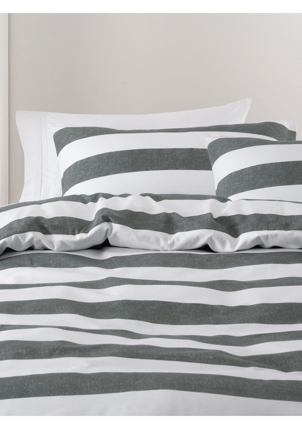 Bold stripes meet cosy comfort with the Sydney duvet cover set. It’s thick, textured print stripe design brings a touch of modern sophistication, perfect for creating a relaxing yet stylish space. Available in Denim, Carbon and Moss, timeless colours that effortlessly complement any décor. - Duvet Cover - 265 x 210cm Pillowcases - 48 x 73cm - 100% Cotton - Machine Washable