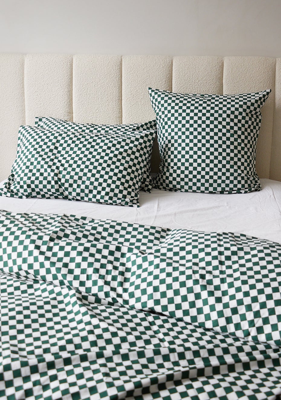 George Collective - 100% Stonewashed Cotton Duvet Cover Set - Super King - Checkerboard ForestCLEARANCE