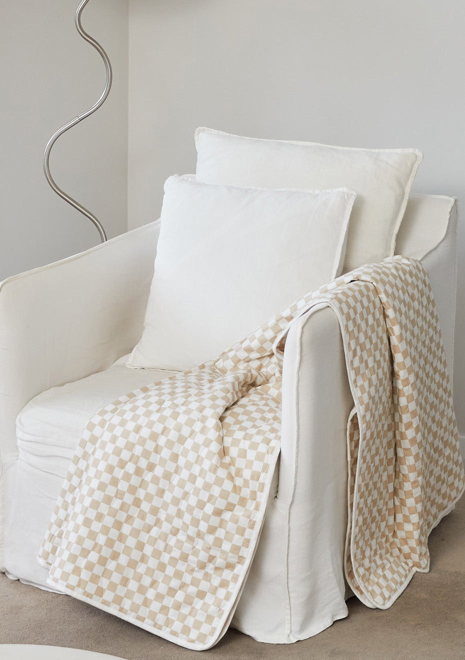George Collective - Stonewashed Cotton Quilted Throw - Checkerboard NaturalCLEARANCE