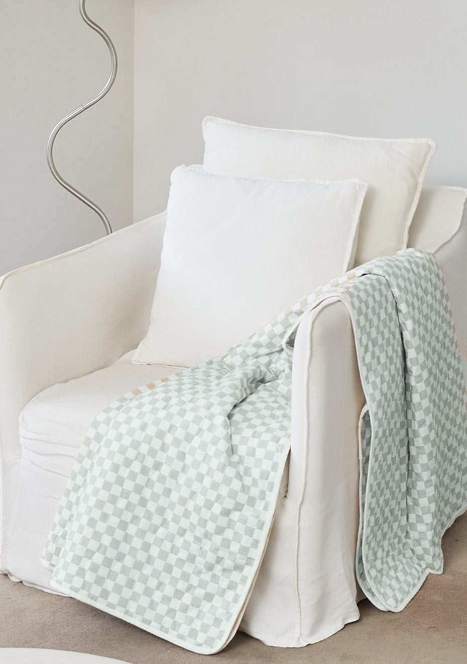 George Collective - Stonewashed Cotton Quilted Throw - Desert Sage CheckerCLEARANCE