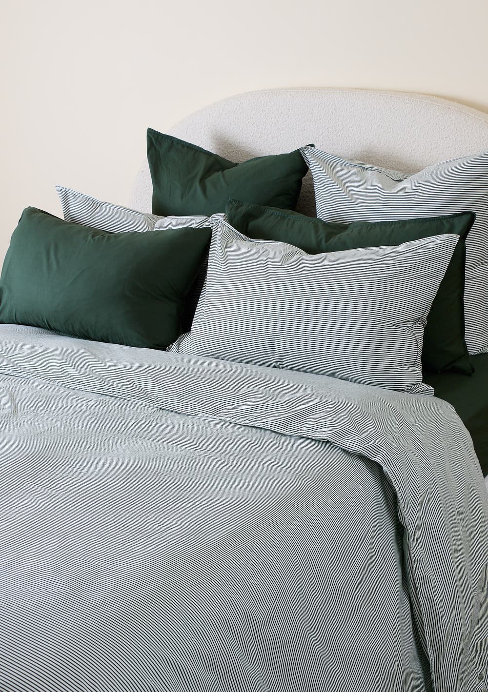 George Collective - 100% Stonewashed Cotton Duvet Cover Set - King - Forest Mini StripeCLEARANCE