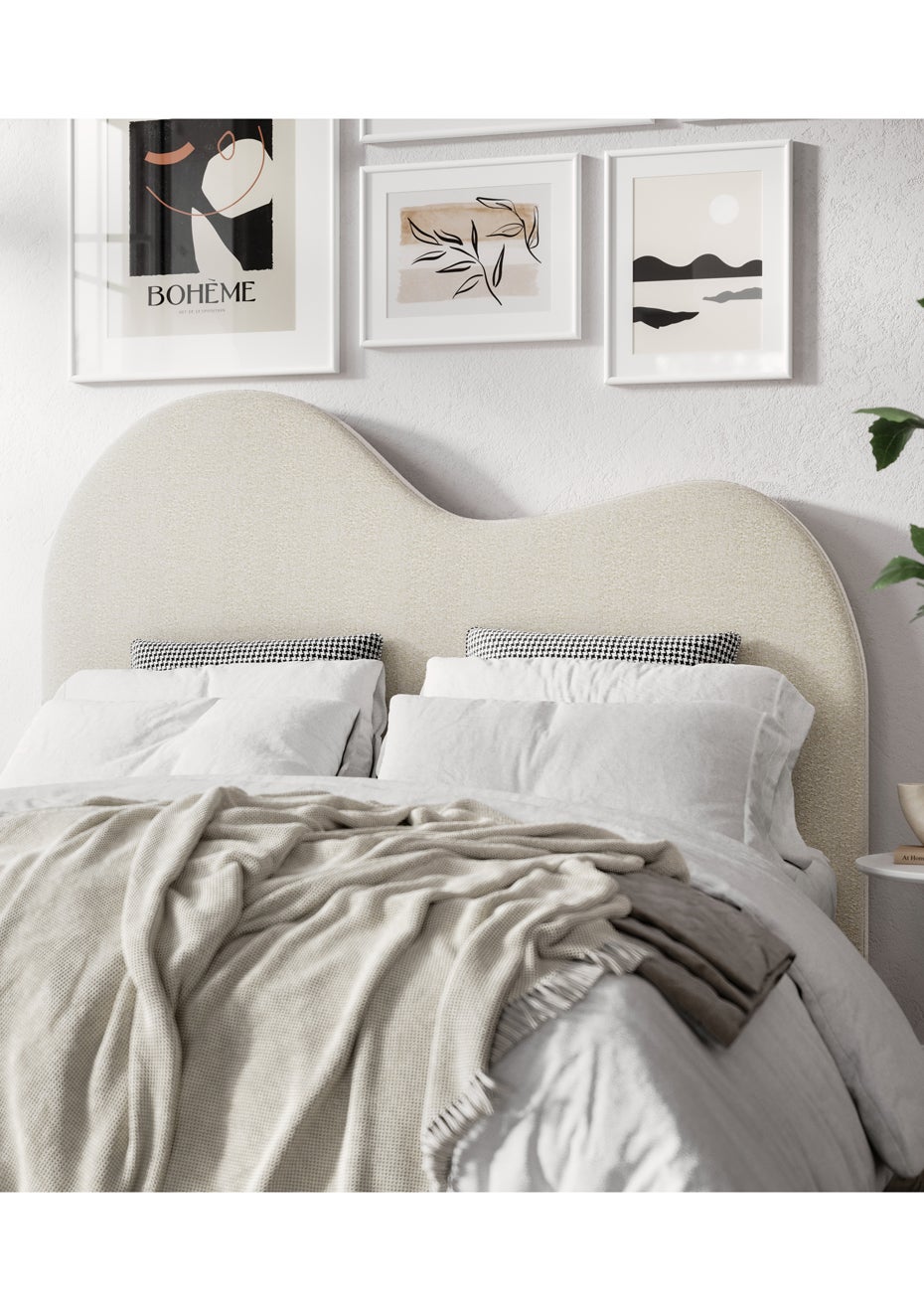 Our Wave headboard is the ultimate sculptural accent piece. Upholstered in textural boucle fabric, the asymmetrical curves are a nod to mid-century design.